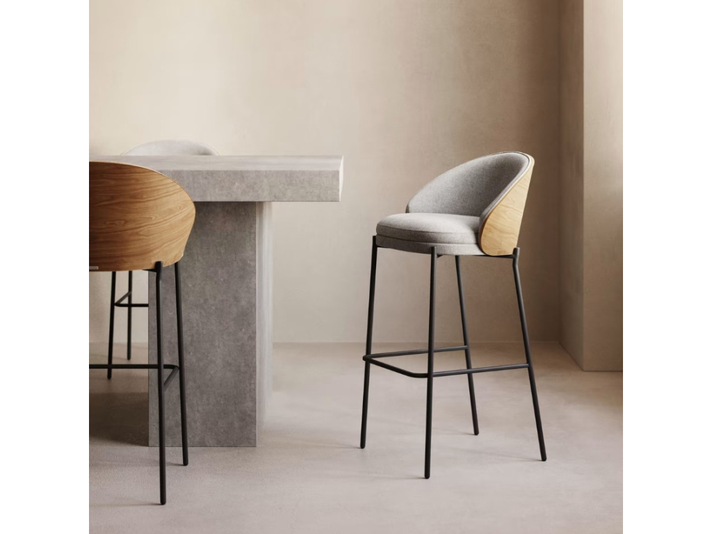Barová židle Kave Home Eamy zaujme svým prostorným opěradlem, vyrobeným z přírodně zbarvené jasanové dýhy s krásnou výraznou kresbou. Vkusně jej doplňuje látkové čalounění světle šedé barvy a štíhlá kovová podnož s opěrkou na nohy. Eamy bude u barového pultu i kuchyňského ostrůvku nejen pohodlným místem k sezením, ale také designovým kouskem, který dodá celé místnosti styl. Dostupná je v několika barevných variantách.
