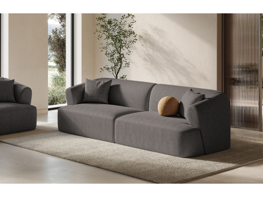 Pohovka Campi od značky Cosmopolitan Design je ztělesněním moderní elegance. Její nízký profil, výrazné zaoblené tvary a velkorysé sedáky vytvářejí dojem klidu, luxusu a sebevědomého designu. O vaše maximální pohodlí se postará žinylková látka Moly, která je velmi příjemná až téměř hedvábná na dotek. Probarvené nitě vytvářejí poutavou 3D strukturu se stínovým a lesklým efektem. Tkanina je velmi odolná proti oděru, díky tomu je pohovka vhodná i do komerčních prostor. Pohovka je dostupná v pestré paletě barev – od jemných neutrálních tónů až po syté, výrazné odstíny. Díky tomu si snadno vyberete variantu, která dokonale ladí s vaším stylem i náladou interiéru. Campi je dokonalým spojením moderního vzhledu a každodenního pohodlí – pro interiér, který má styl i duši.