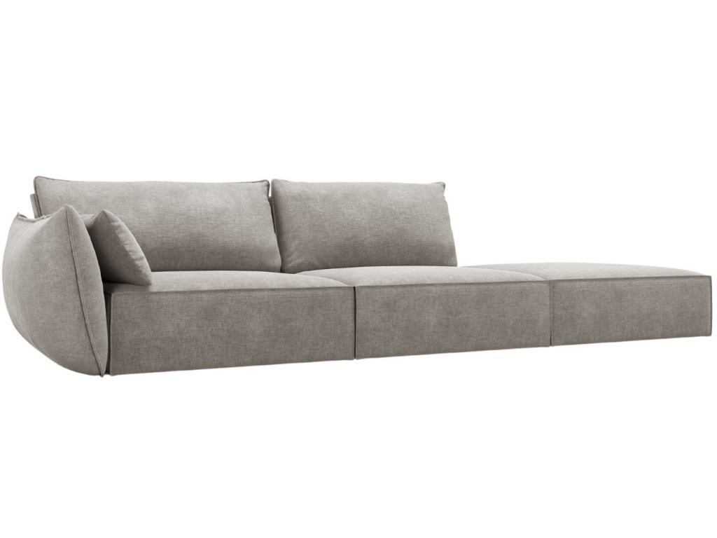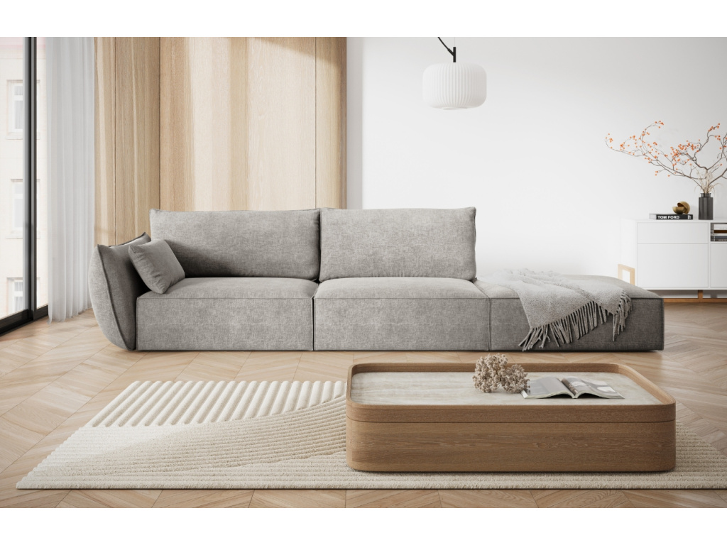 Čtyřmístná pohovka Kaelle od značky Micadoni zaujme elegantním nízkým sezením a tvarovanými područkami, které jí dodávají jedinečný vzhled. Obdélníková silueta s propracovaným lemováním kolem područek a opěradel připomíná tvary polštářů, které poskytují pohodlí a činí pohovku ideálním doplňkem moderního obývacího pokoje. Součástí sezení je malý polštářek, který dodává styl i komfort. Celý povrch je čalouněn žinylkovou tkaninou, která je velmi příjemná až téměř hedvábná na dotek. Probarvené nitě vytvářejí poutavou 3D strukturu se stínovým a lesklým efektem. Tkanina je velmi odolná proti oděru, díky tomu je pohovka vhodná i do komerčních prostor. Tento model lze navíc snadno kombinovat s dalším nábytkem ze stejné kolekce a je dostupným jak v žinylkovém, tak v sametovém provedení.