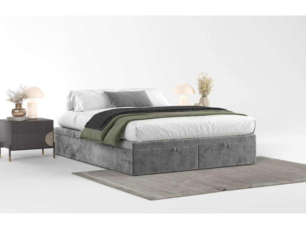 Více infoŠedá čalouněná dvoulůžková postel HICKORY 160 x 200 cm s úložným prostorem
