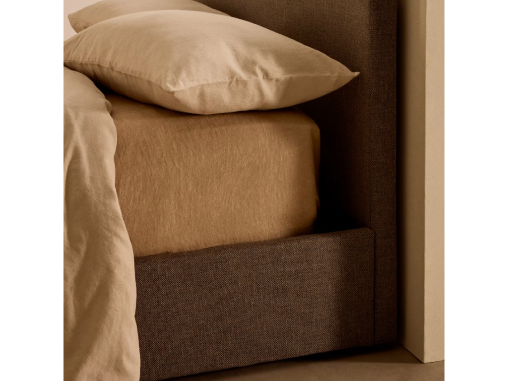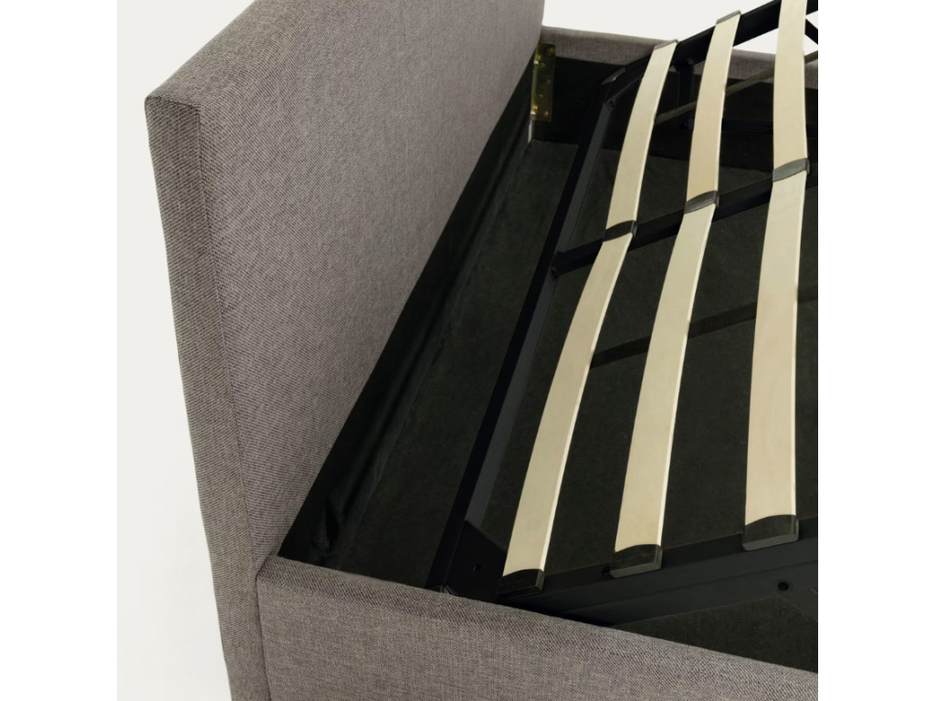 Dvoulůžková postel Kave Home Nahiri disponuje prostorným úložištěm, skrytým pod výklopným roštem, který se otevírá pomocí plynového pístového mechanismu. Úložný prostor se vždy hodí – zejména v menších domácnostech. Využít ho můžete nejen na lůžkoviny, ale také sezónní věci. Rám postele je čalouněný, stejně jako její prostorné čelo – zvolená šedá barva ja neutrální a zapadne tak i do barevnějších interiérů. Pokud jste vyznavači jednoduché a hlavně nadčasové elegance, může být Nahiri tou pravou volbou pro vaši ložnici!