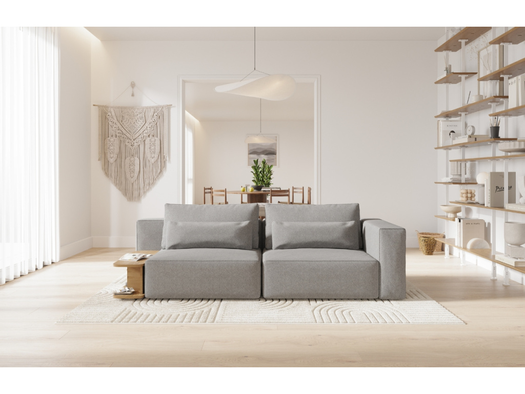 Modulární dvoumístná pohovka Riposo se hodí do minimalistických či skandinávských interiérů, do kterých vnese eleganci, styl a nadčasovost. Její modulární konstrukce umožňuje flexibilní uspořádání sedadel a stolku tak, aby vše vyhovovalo vašim potřebám. Riposo je čalouněna kvalitní polyesterovou látkou LUKKA, která se pyšní vysokým martindale. Je proto vhodná i do domácností s dětmi nebo domácími mazlíčky. Díky jejímu provedení a dekorativním polštářkům si sezení v její společnosti zamilujete – ať už budete odpočívat u filmu nebo si budete užívat společný čas s rodinou, třeba u deskových her. Jistě oceníte i dřevěný stolek, kam si můžete pohodlně odložit televizní ovladač nebo šálek čaje. Pohovku nabízíme i v dalších barvách, velikosti a provedeních!