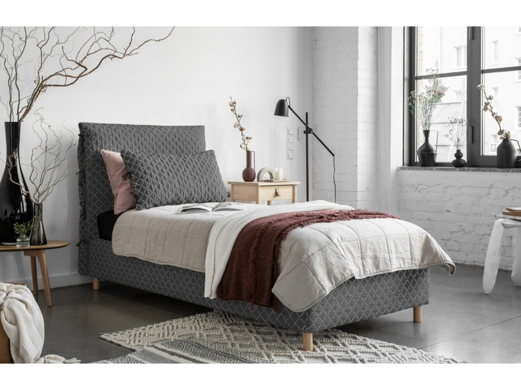 Jednolůžková postel Sleepy Luna od značky Miuform pomůže vytvořit ve vašem pokoji či ložnici krásný a útulný prostor. Pevný břidlicový rám postele je čalouněný příjemnou látkou s prošívaným dekorem. Díky měkoučkému čelu si vychutnáte pohodlí i při čtení své oblíbené knížky. Čelo je svázané provázky, které vytváří zajímavý detail. Nechte se příjemně unášet do říše snů s postelí Sleepy Luna. Je dostupná také v dalších barvách a rozměrech.
