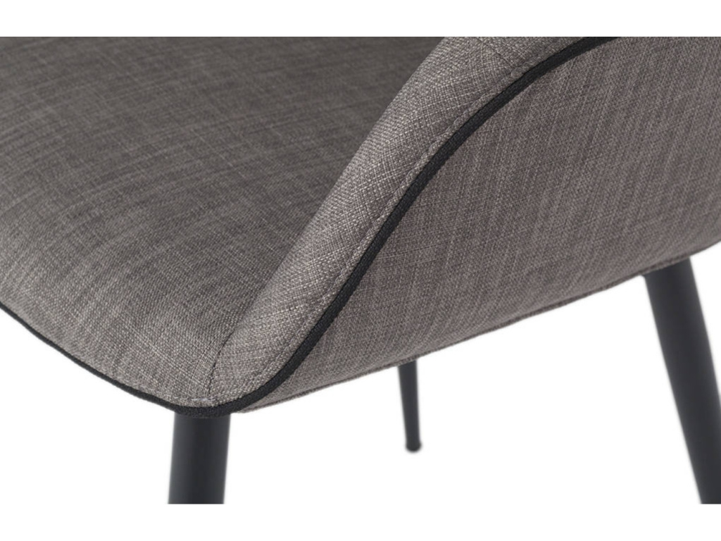 Elegantní židle od Angel Cerdá zaujme svým čalouněním látkou s jemným vzorkem, které je obohacené o stylové černé lemování. To se hezky doplňuje s kónicky se zužující minimalistickou podnoží z černě lakované oceli. Ergonomický tvar opěradla s područkami nabízí maximální pohodlí, které jistě uvítáte v jídelně, obývacím pokoji i v pracovně. Židle se svým sofistikovaným nadčasovým designem doplní každý moderní interiér.