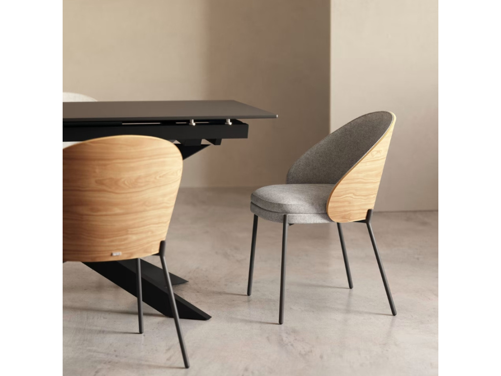 Židle Kave Home Eamy zaujme svým prostorným opěradlem, vyrobeným z přírodně zbarvené jasanové dýhy s krásnou výraznou kresbou. Vkusně jej doplňuje látkové čalounění světle šedé barvy a štíhlá kovová podnož. Eamy bude u jídelního stolu nejen pohodlným místem k sezením, ale také designovým kouskem, který dodá celé místnosti styl. Umístit ji ale můžete také do pracovny nebo do studentského pokoje – bude skvělým parťákem při práci i učení!