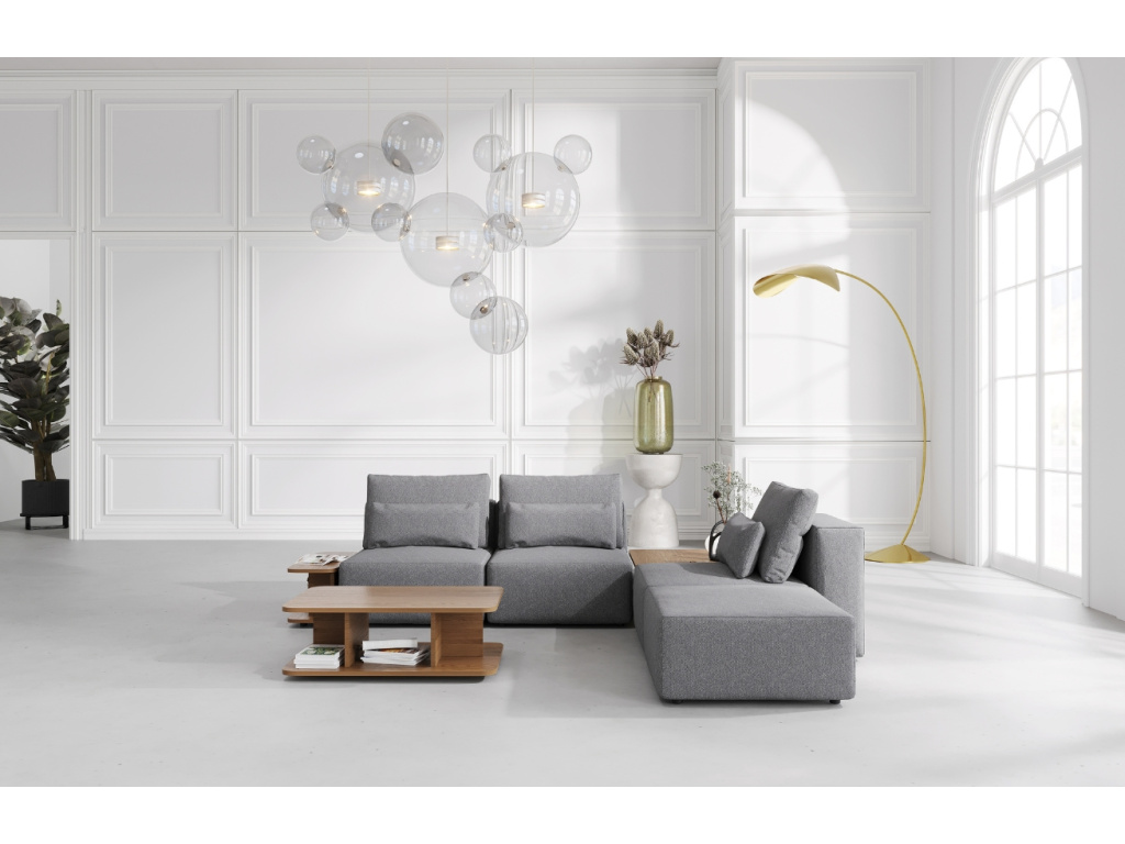 Více infoŠedá čalouněná modulární pohovka Riposo II. 290 cm se stolky