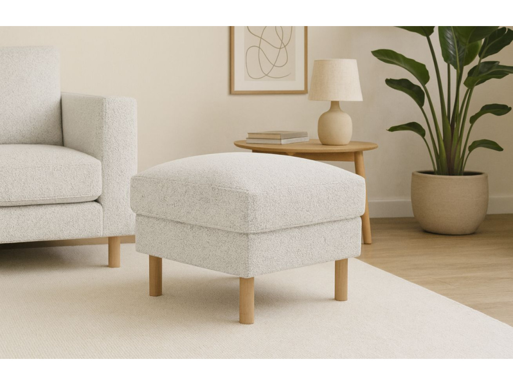 Podnožka Eden spojuje skandinávský design s výjimečným pohodlím a kompaktními rozměry. Díky čistým liniím, elegantnímu tvaru a zaoblené dřevěné podnoži působí lehce a vzdušně, takže se snadno začlení i do menších interiérů. Přestože zabere jen málo místa, poskytuje útulný prostor pro pohodlné natažení nohou nebo jako doplněk k posezení. Sedací část je vyplněna přírodním peřím, které zajišťuje měkkost a příjemnou oporu při každodenním odpočinku. Látka Puente je skutečnou ozdobou tohoto kusu nábytku. Vzniká kombinací čtyř druhů přízí, které se liší tloušťkou, barvou i charakterem. Společně tvoří bohatou strukturu, která láká k doteku i pohledu. Povrch je jemně členitý s drobnými výstupky, matný na pohled a příjemně hřejivý na dotek. Látka má více než stoletou tradici, ale díky moderním barevným kombinacím působí svěže a snadno zapadne do různých interiérů, od klasických po současné. Podnožka je pečlivě vyrobená na zakázku v Evropě, což zaručuje špičkovou kvalitu a dlouhou životnost.