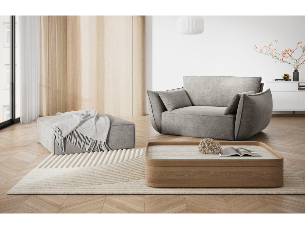 Podnožka Kaelle od značky Micadoni zaujme elegantním provedením. Obdélníková silueta s propracovaným lemováním ji dodává jedinečný vzhled, který činí podnožku ideálním doplňkem do moderního obývacího pokoje. Celý povrch je čalouněn žinylkovou tkaninou, která je velmi příjemná až téměř hedvábná na dotek. Probarvené nitě vytvářejí poutavou 3D strukturu se stínovým a lesklým efektem. Tkanina je velmi odolná proti oděru, díky tomu je podnožka vhodná i do komerčních prostor. Tento model lze navíc snadno kombinovat s dalším nábytkem ze stejné kolekce, která je dostupná jak v žinylkovém, tak v sametovém provedení.