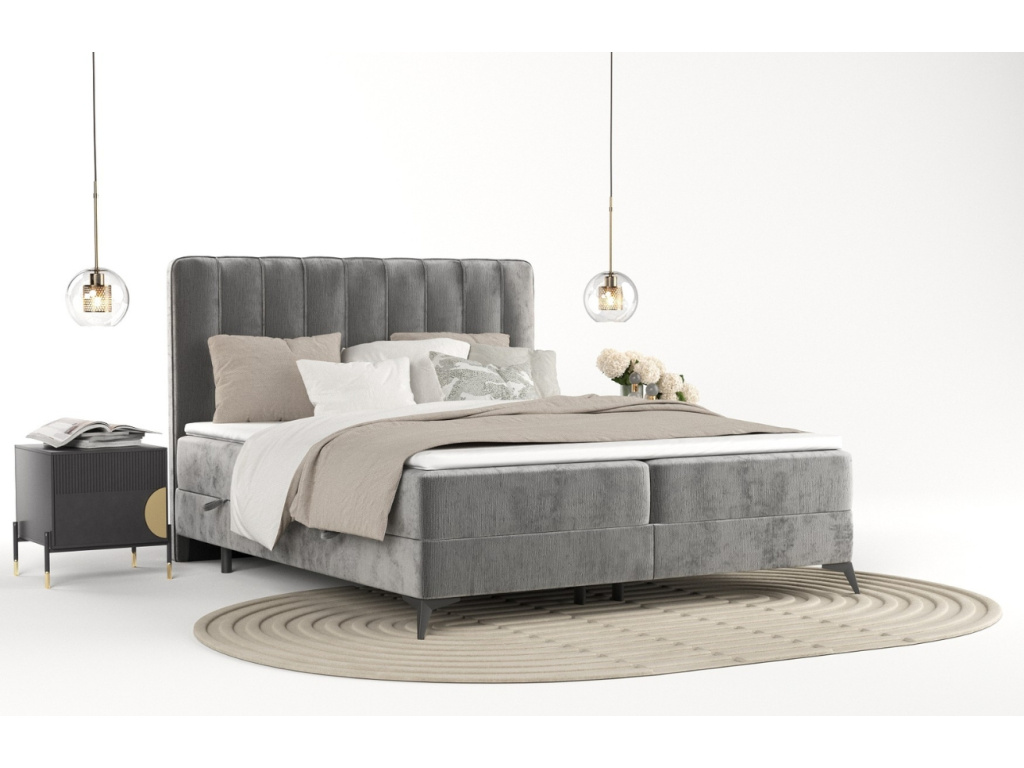 Podívám seŠedá čalouněná postel boxspring AGGAZ 200 x 200 cm