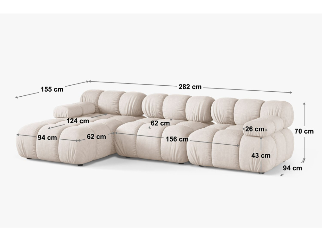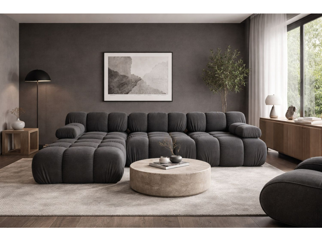 Rohová čtyřmístná pohovka Bellis spojuje ikonický design s maximálním pohodlím. Její elegantní zaoblené linie a propracované čalounění vdechnou interiéru jedinečný styl inspirovaný retro estetikou 70. let, doplněnou o moderní vzhled. Pružinové moduly zajišťují ideální rovnováhu mezi měkkostí a oporou, takže sezení je pohodlné i při každodenním používání. Pohovka je čalouněna výraznou 3D látkou Sonic s trojrozměrnou strukturou a jemným leskem, která podtrhuje její moderní charakter a je příjemná i odolná pro každodenní používání. K dispozici je také v dalších typech látek a barevných provedeních, takže si ji snadno přizpůsobíte svému interiéru. Bellis se stane přirozenou dominantou obývacího pokoje a vytvoří prostor, kde se snoubí styl s pohodlím. Skvěle ji doplní jednoduchý konferenční stolek a jemné textilie, které nechají vyniknout její výrazný tvar.