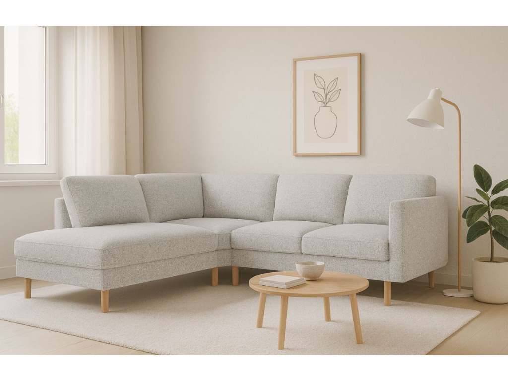 Rohová čtyřmístná pohovka Eden spojuje skandinávský design s výjimečným pohodlím a kompaktními rozměry. Díky čistým liniím, elegantním područkám a zaoblené dřevěné podnoži působí lehce a vzdušně, což z ní dělá ideální volbu do menších interiérů. Přestože nezabere mnoho místa, nabízí útulné a komfortní sezení, které vybízí k odpočinku. Sedací část je vyplněna přírodním peřím, které poskytuje měkkost a příjemnou oporu při každodenním lenošení. Látka Puente je skutečnou ozdobou této pohovky. Vzniká kombinací čtyř druhů přízí lišících se tloušťkou, barvou a charakterem, které společně vytvářejí bohatou a výraznou strukturu. Povrch je jemně členitý s drobnými výstupky, matný na pohled a příjemně hřejivý na dotek. Látka má více než stoletou tradici, ale díky moderním barevným kombinacím se snadno začlení do interiérů od klasických po současné. Pohovka Eden je pečlivě vyrobena na zakázku v Evropě, což zaručuje špičkovou kvalitu zpracování, vysokou odolnost a dlouhou životnost.