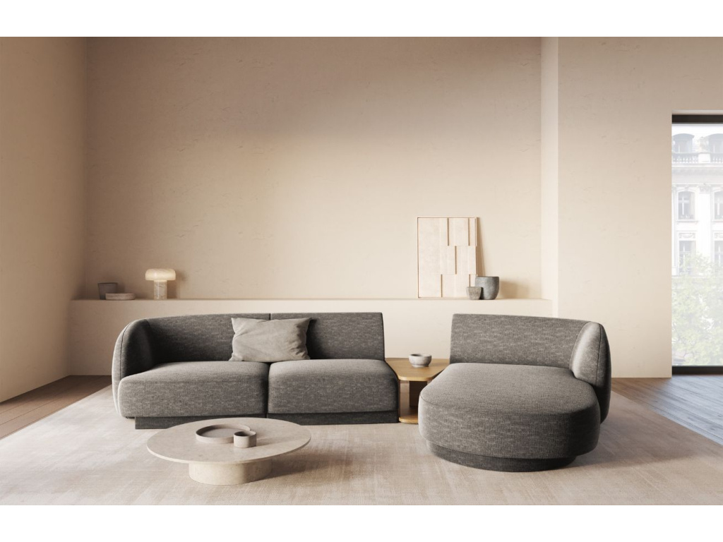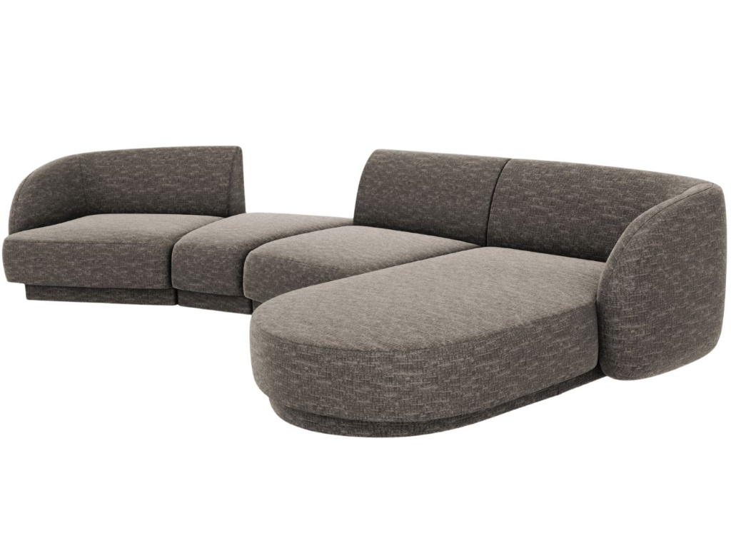 Čtyřmístnou rohovou pohovku Miley od značky Micadoni si zamilujete! Její elegantně obloukovité opěradlo vás doslova zve k odpočinku, zatímco jemně zapuštěná základna dodává celému kusu vzdušnost a lehkost. Žinylková potahová látka je velmi příjemná až téměř hedvábná na dotek. Probarvené nitě vytvářejí poutavou 3D strukturu se stínovým a lesklým efektem. Tkanina je velmi odolná proti oděru, díky tomu je pohovka vhodná i do komerčních prostor. Vysoká kvalita a neobyčejný vzhled látky dodávají nábytku sofistikovaný dojem, který umožňuje jeho široké využití v moderním nebo skandinávském stylu. Integrovaný konferenční stolek je nejen designovým prvkem, ale také praktickým místem pro odložení věcí, které chcete mít po ruce, nebo pro umístění dekorací. K pohovce je možné přikoupit další produkty z kolekce Miley. Díky tomu si můžete vytvořit sedací soupravu, kterou je vhodné kombinovat se skleněným nebo dřevěným konferenčním stolkem.