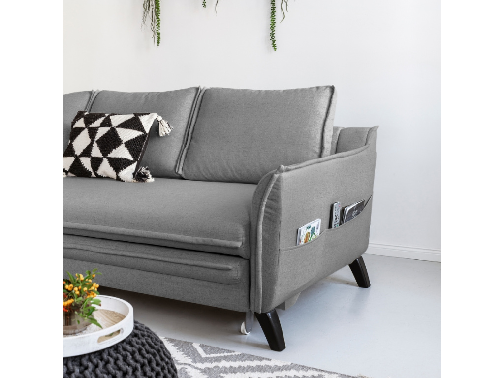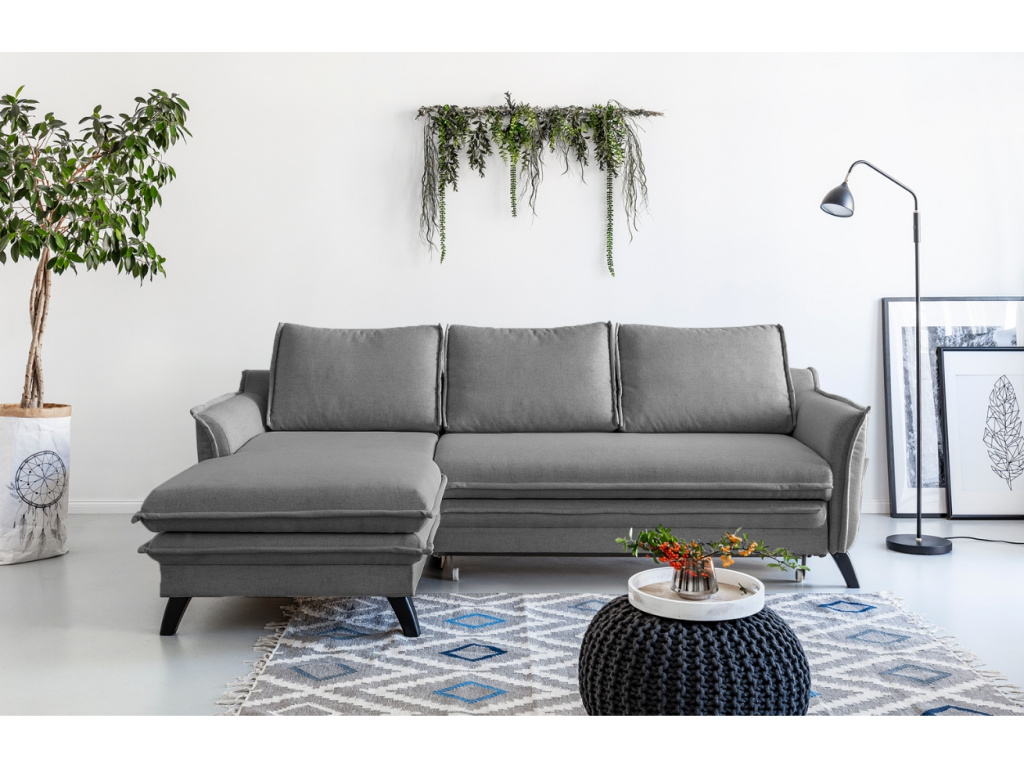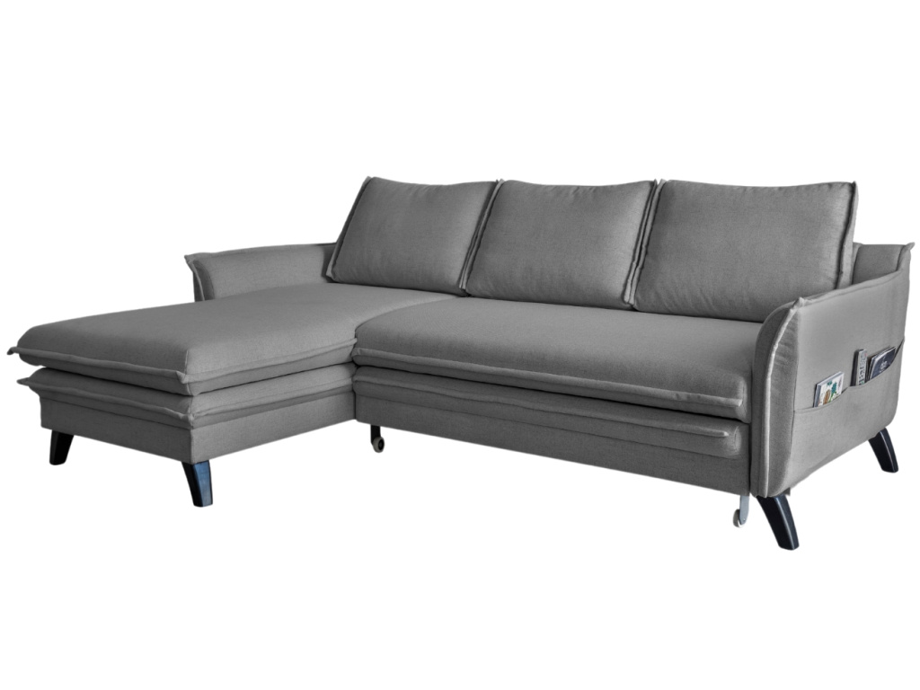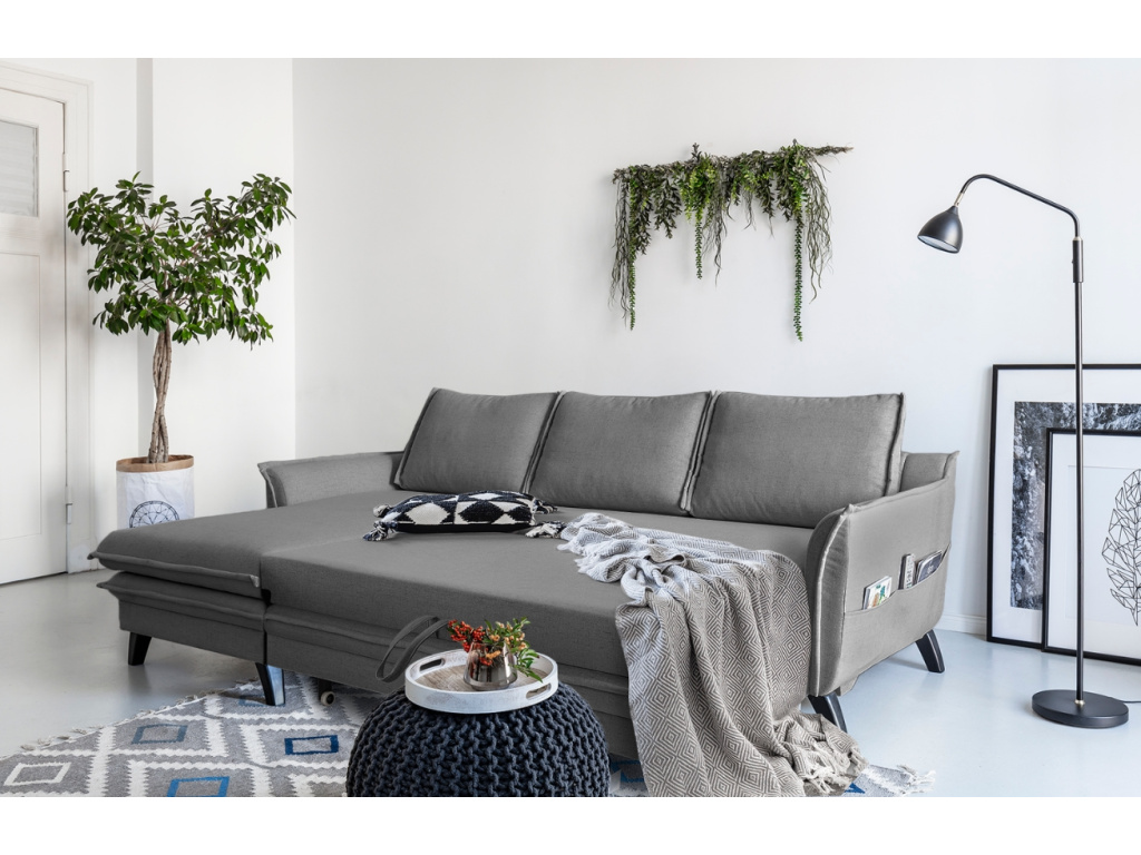 Stylová rohová rozkládací pohovka Charming Charlie od značky Miuform vás zaujme již na první pohled svým stylovým designem. Příjemné čalounění ze strukturované látky v šedém odstínu dodává pohovce moderní a zároveň minimalistický vzhled. Inovativní použití povrchové matrace, která je nedílnou součástí pohovky, zajišťuje vysoký komfort při spánku. Příjemným bonusem jsou i kapsy na boční straně pohovky, díky kterým získáte praktickou úschovnu pro váš ovladač či oblíbenou knížku. Nechte se okouzlit tímto nadčasovým kouskem, který nabízíme v dalších barvách a provedeních! Doporučujeme ji kombinovat s dalším nábytkem z řady Charming Charlie.