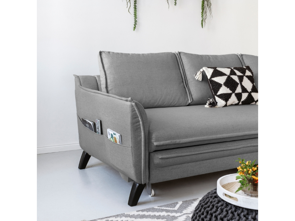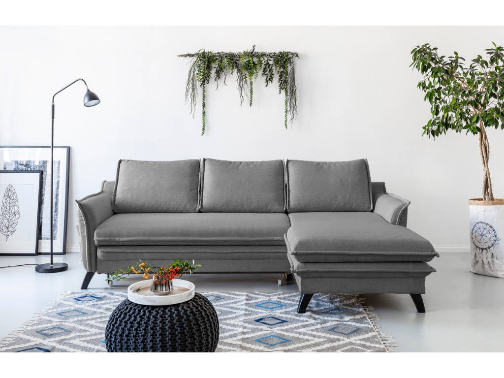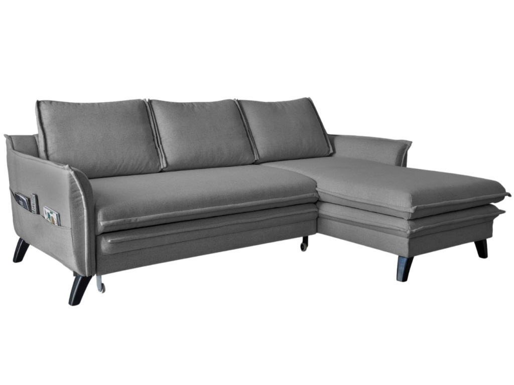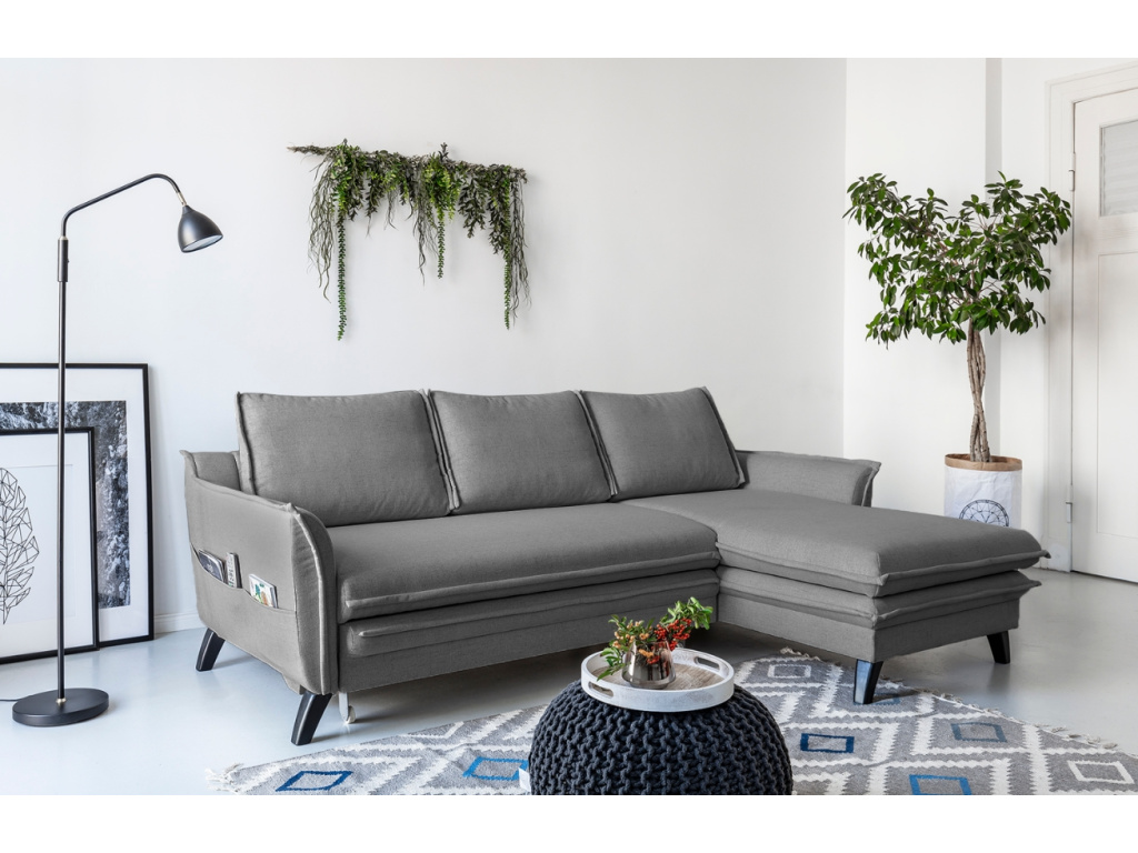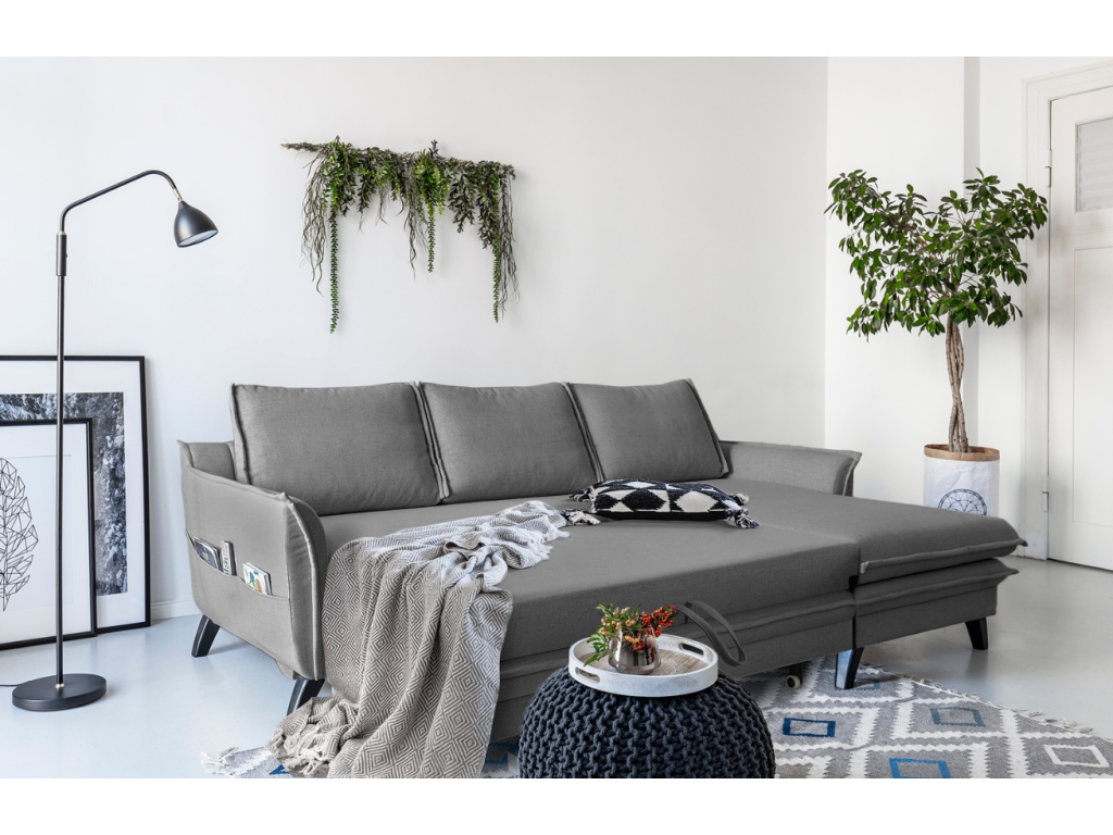 Stylová rohová rozkládací pohovka Charming Charlie od značky Miuform vás zaujme již na první pohled svým stylovým designem. Příjemné čalounění ze strukturované látky v šedém odstínu dodává pohovce moderní a zároveň minimalistický vzhled. Inovativní použití povrchové matrace, která je nedílnou součástí pohovky, zajišťuje vysoký komfort při spánku. Příjemným bonusem jsou i kapsy na boční straně pohovky, díky kterým získáte praktickou úschovnu pro váš ovladač či oblíbenou knížku. Nechte se okouzlit tímto nadčasovým kouskem, který nabízíme v dalších barvách a provedeních! Doporučujeme ji kombinovat s dalším nábytkem z řady Charming Charlie.