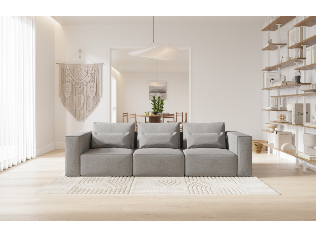 Modulární třímístná pohovka Riposo se hodí do minimalistických či skandinávských interiérů, do kterých vnese eleganci, styl a nadčasovost. Riposo je čalouněna kvalitní polyesterovou látkou LUKKA, která se pyšní vysokým martindale. Je proto vhodná i do domácností s dětmi nebo domácími mazlíčky. Díky jejímu provedení a dekorativním polštářkům si sezení v její společnosti zamilujete – ať už budete odpočívat u filmu nebo si budete užívat společný čas s rodinou, třeba u deskových her. Doplňte ji o konferenční stolek, polštářky nebo pléd a užijte si v její náruči zasloužený relax. Pohovku nabízíme i v dalších barvách, velikosti a provedeních!