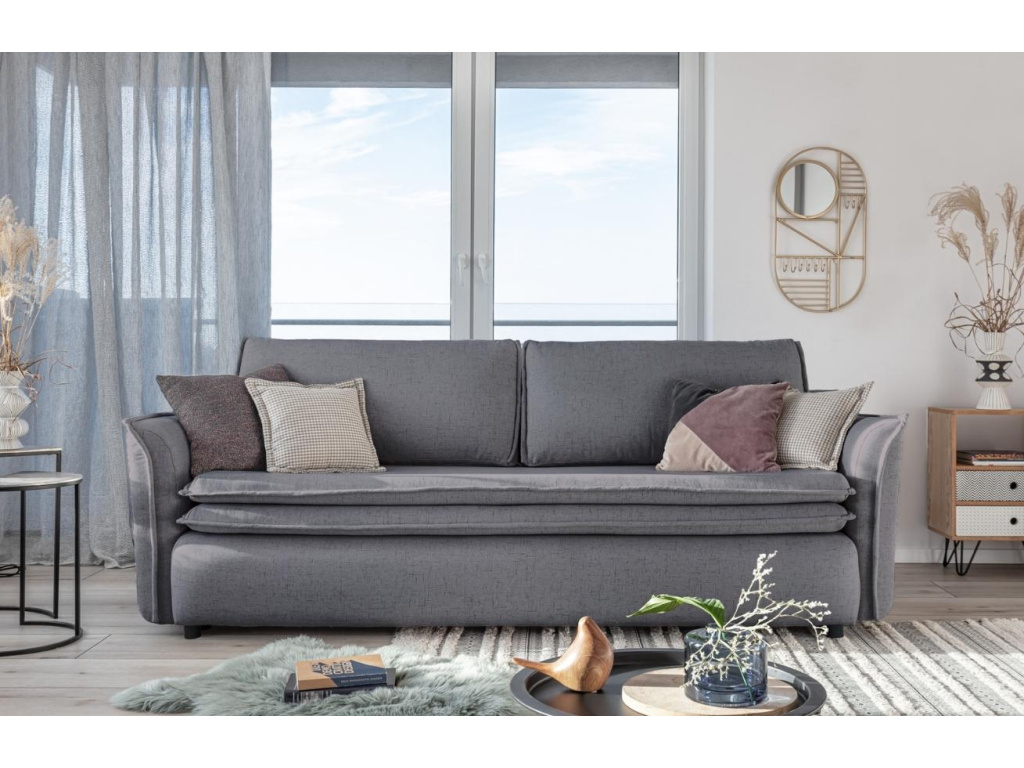 Stylová třímístná rozkládací pohovka Charming Charlie od značky Miuform vás zaujme již na první pohled svým netradičním designem. Příjemné čalounění ze strukturované látky v šedém odstínu dodává pohovce moderní a zároveň efektivní vzhled. Inovativní použití povrchové matrace, která je nedílnou součástí pohovky, zajišťuje vysoký komfort spánku. Příjemným bonusem jsou kapsy na boční straně křesla, díky kterým získáte praktickou odkládací plochu pro váš ovladač či oblíbenou knížku. Pohovka se díky 90.000 martindale cyklům skvěle hodí nejen do moderních interiérů, ale také do komerčních prostor jako jsou hotelové lobby apod. Nechte se okouzlit pohovkou Charming Charlie. Doporučujeme kombinaci více prvků z řady Charming Charlie.
