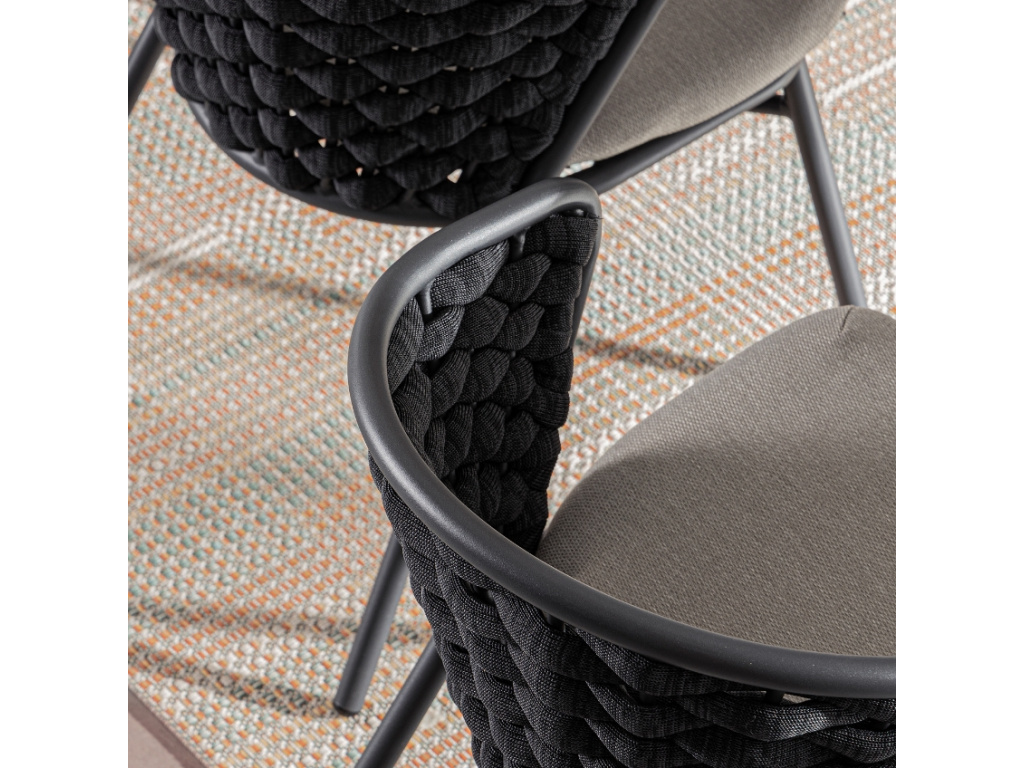Užijte si pohodové chvíle na čerstvém vzduchu. Grafitově šedá hliníková židle Harlow s pohodlným podsedákem a hustým textilním výpletem na opěradle přímo vybízí k posezení na zahradě či terase. Robustní odolná konstrukce s širokým sedákem vám zajistí stabilní a komfortní sezení ve venkovních podmínkách. Potěší vás jistě také praktický design, díky kterému jsou židle stohovatelné. Můžete se tak připravit na početné návštěvy, aniž by vám uskladnění židlí zabralo mnoho místa. Podsedák můžete snadno odejmout, což vám usnadní nejen jeho čištění, ale také údržbu celé židle. Stylové zahradní židle Harlow od italské značky Bizzotto nabízíme ve dvou atraktivních barvách – antracitově šedé a olivově zelené.