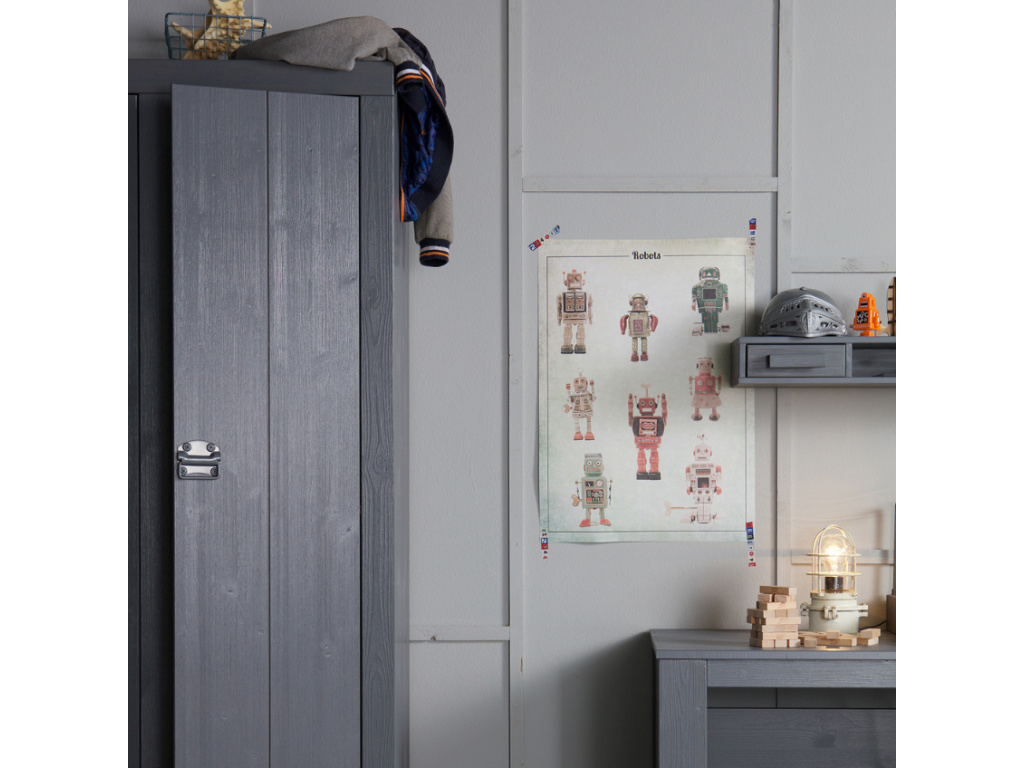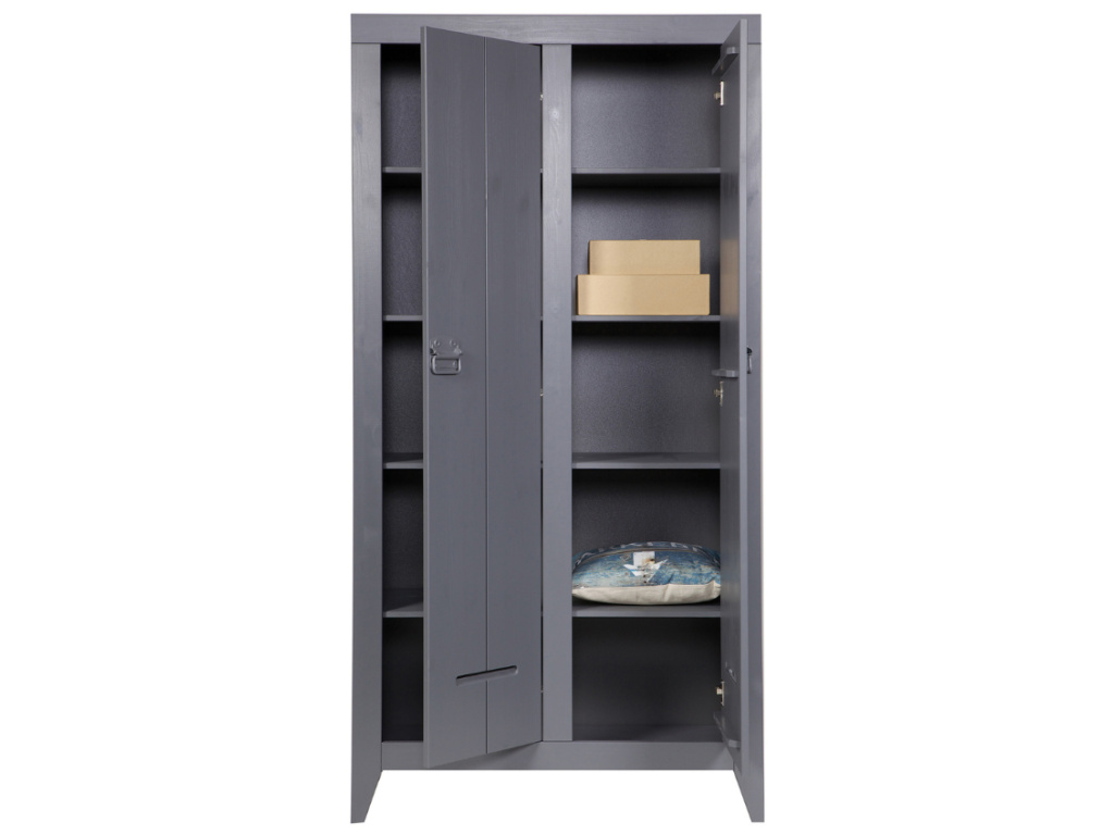 Pro milovníky industriálních designů bude skříň Kleus tou pravou volbou. K výrobě bylo použito borovicové dřevo s broušenou šedou povrchovou úpravou. Nestejnosměrná textura dřeva s viditelnými suky však zůstala zachována, použité dřevo díky tomu vypadá opravdu skvěle a můžete mít jistotu, že právě vaše skříň bude zcela unikátní. Po otevření skříně pomocí kovových madel najdete uvnitř skříně laminátové police. Jistě vás potěší, že na výrobu produktu bylo použito dřevo s certifikací FSC, takže jeho výroba nezatížila životní prostředí. Samozřejmostí je přehledný návod k montáži, který najdete v balení.