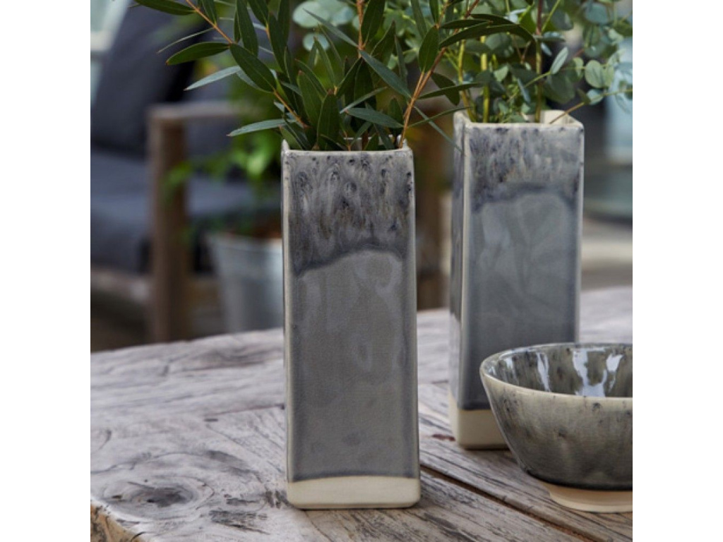 Kameninová váza ze série MADEIRA příjemně osvěží váš interiér ve vintage stylu. Lesklá šedá glazura s popraskaným efektem působí starožitným dojmem a vždy upoutá vaši pozornost. Díky svému netradičnímu kvádrovitému tvaru dodá každému prostoru nový rozměr. Díky tomu působí jedinečným uměleckým dojmem. Do vázy můžete umístit nejen řezané květiny, ale i peří či ozdobné větve a proutí.
