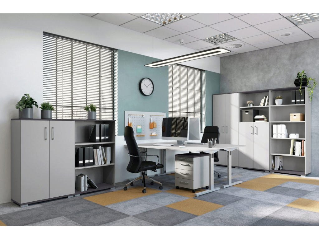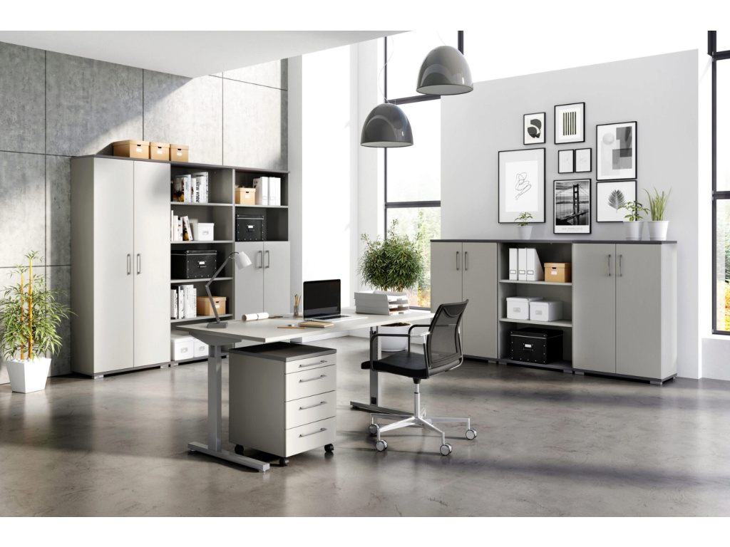 Kancelářská skříň Profi 2.0 od značky Germania spojuje moderní vzhled, precizní zpracování a dlouhou životnost – zkrátka kvalitu, na kterou se můžete spolehnout každý den. Povrchová úprava z melaminové pryskyřice chrání korpus před poškrábáním a vlhkostí, zatímco kvalitní ABS hrany zaručují, že si skříň zachová svůj vzhled po dlouhá léta. Za minimalistickým designem se skrývá promyšleně uspořádaný úložný prostor, který nabízí dostatek místa pro šanony, dokumenty i kancelářské doplňky. Profi 2.0 tak spojuje praktičnost s elegancí a vytváří prostředí, ve kterém se snadno pracuje i dýchá.