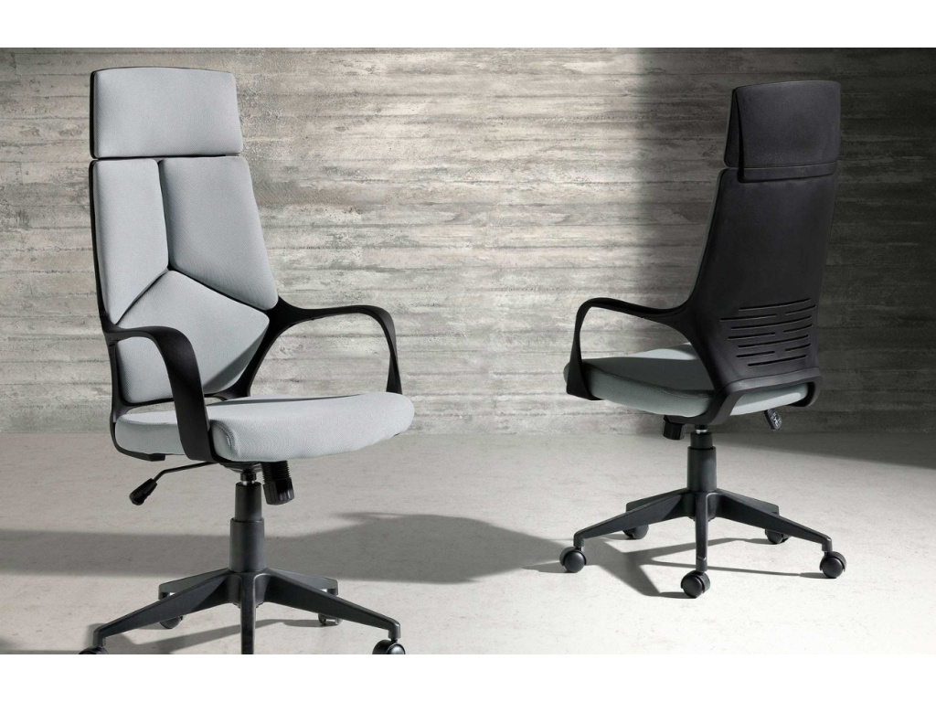 Tato stylová kancelářská židle propojí moderní design s maximálním komfortem! Díky světle šedému čalounění působí vzdušně a elegantně a černé PVC prvky dodají interiéru lehký průmyslový nádech. Praktické područky a nastavitelná výška zajistí pohodlí i při dlouhém sezení. Její stabilní podnož s kolečky vám umožní snadný pohyb po pracovním prostoru. Bude perfektní volbou pro stylovou domácí kancelář nebo moderní pracovní koutek.