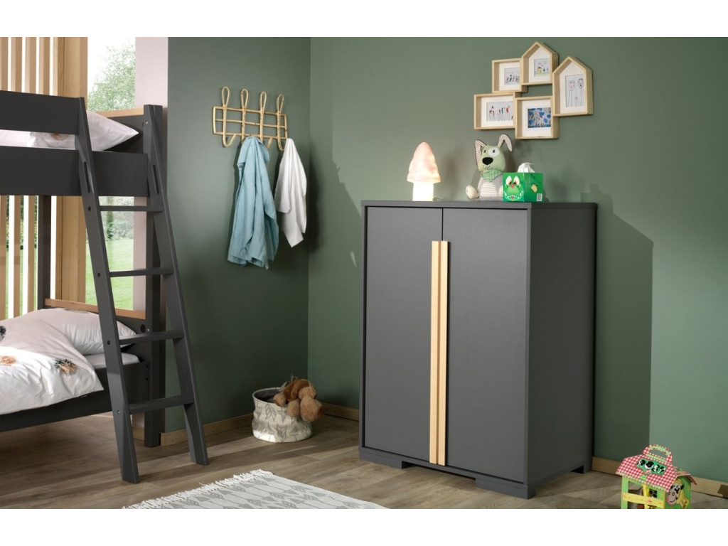 Komoda Londen značky Vipack disponuje dvěma policemi, které jsou skryty za dveřmi s výraznými masivními úchytkami. Pro menší děti může sloužit jako šatní skříň, starší děti ji mohou využít k uskladnění svých hraček nebo knížek a učebnic. Komoda pochází z bohaté série Londen, díky které může být vybavení dětského pokoje dokonale designově sladěno. Svými rozměry skvěle zapadne pod patrovou postel Landon, díky čemuž ušetříte volné místo.