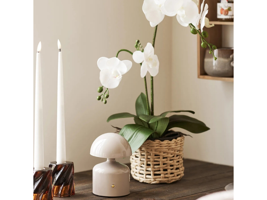 Stolní lampa Ailla propojuje jemnou estetiku s moderním výrazem a skvěle doplní interiéry ve stylu japandi, urban rustic nebo moderního minimalismu. Svým oblým tvarem a hladkým lesklým povrchem přinese do prostoru pocit klidu i vizuální harmonie, zatímco decentní zlatý detail na podstavě přidá špetku elegance. Díky kompaktní velikosti snadno zapadne na pracovní stůl, noční stolek či polici, kde vytvoří útulné světelné zázemí bez rušení okolního designu. Tento kousek nejen svítí, ale zároveň dotváří atmosféru s jemností a stylem. Lampa je dobíjecí a nabízí možnost stmívání ve třech úrovních jasu, takže si intenzitu světla snadno přizpůsobíte aktuální náladě nebo potřebám.