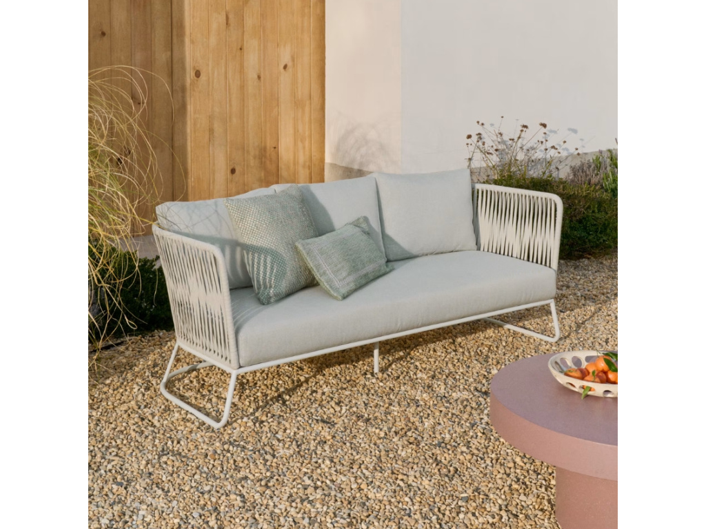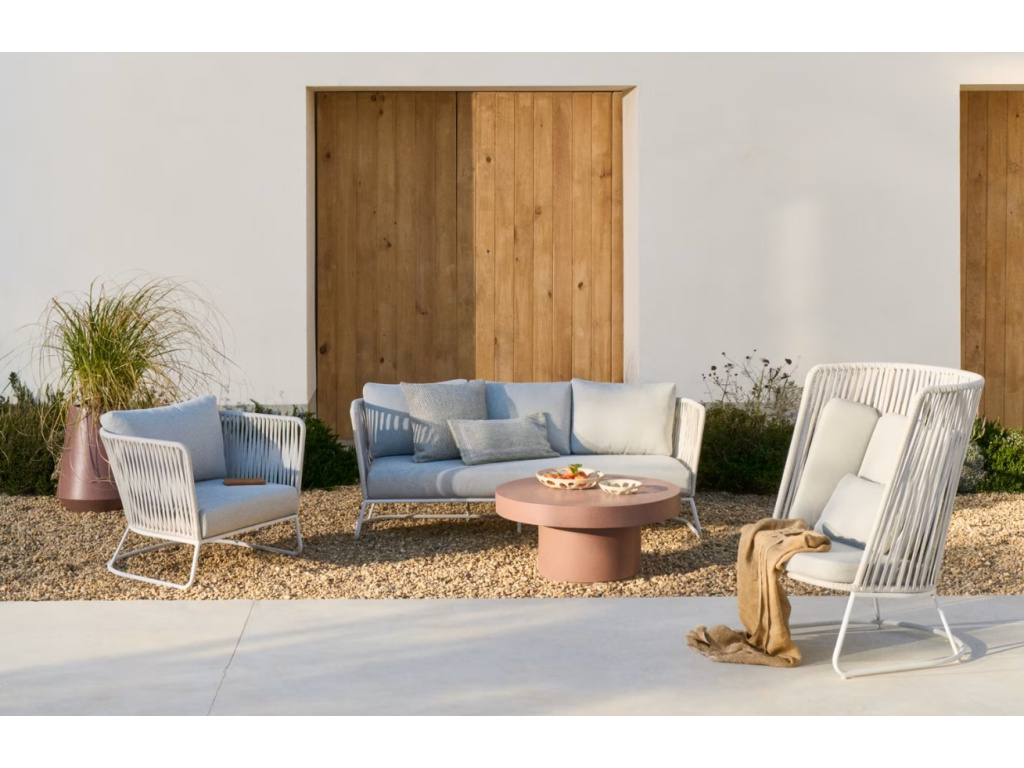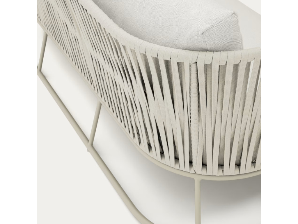 Pohovka Saconca promění vaši terasu či pergolu během chvilky v útulné místo, které vám poskytne zasloužené pohodlí. Na první pohled zaujme svým atraktivním výpletem, který z ní dělá opravdu originální kousek. Dodávána je včetně podsedáku a 3 opěrných polštářů a nejvíce slušet jí to bude společně s křeslem – u toho si můžete zvolit mezi variantou s nižším a vyšším opěradlem. A pokud máte na zahradě také stůl, doplňte ho jednou ze tří barev židlí z této atraktivní outdoorové série od značky Kave Home!