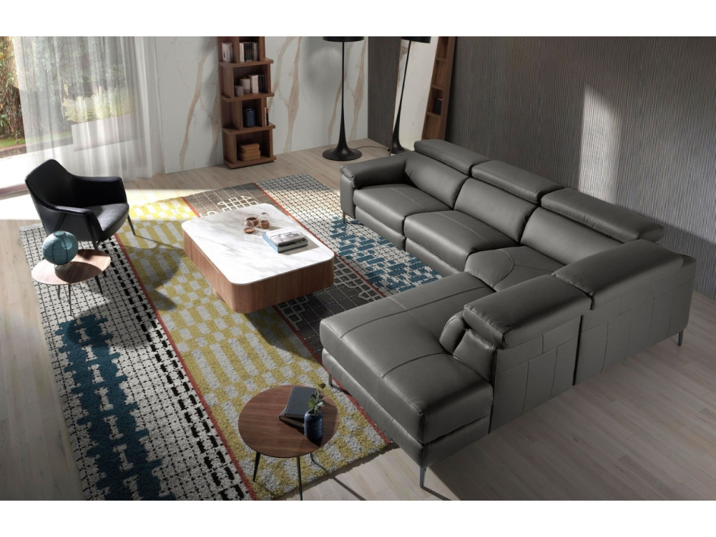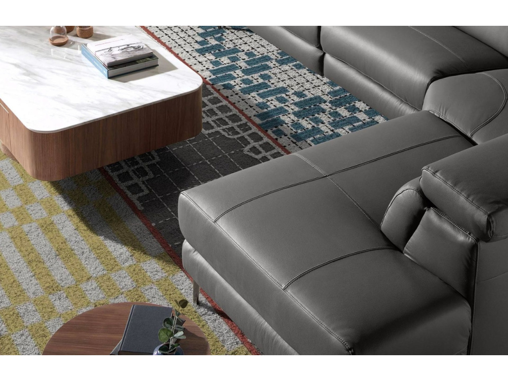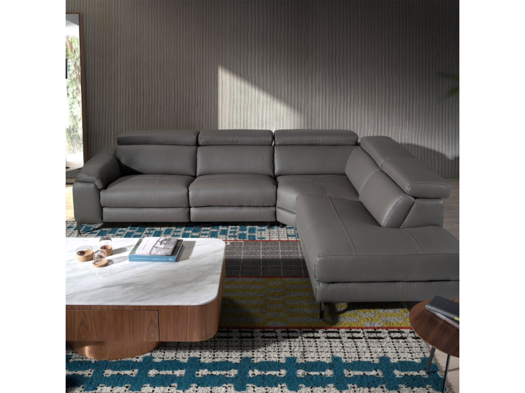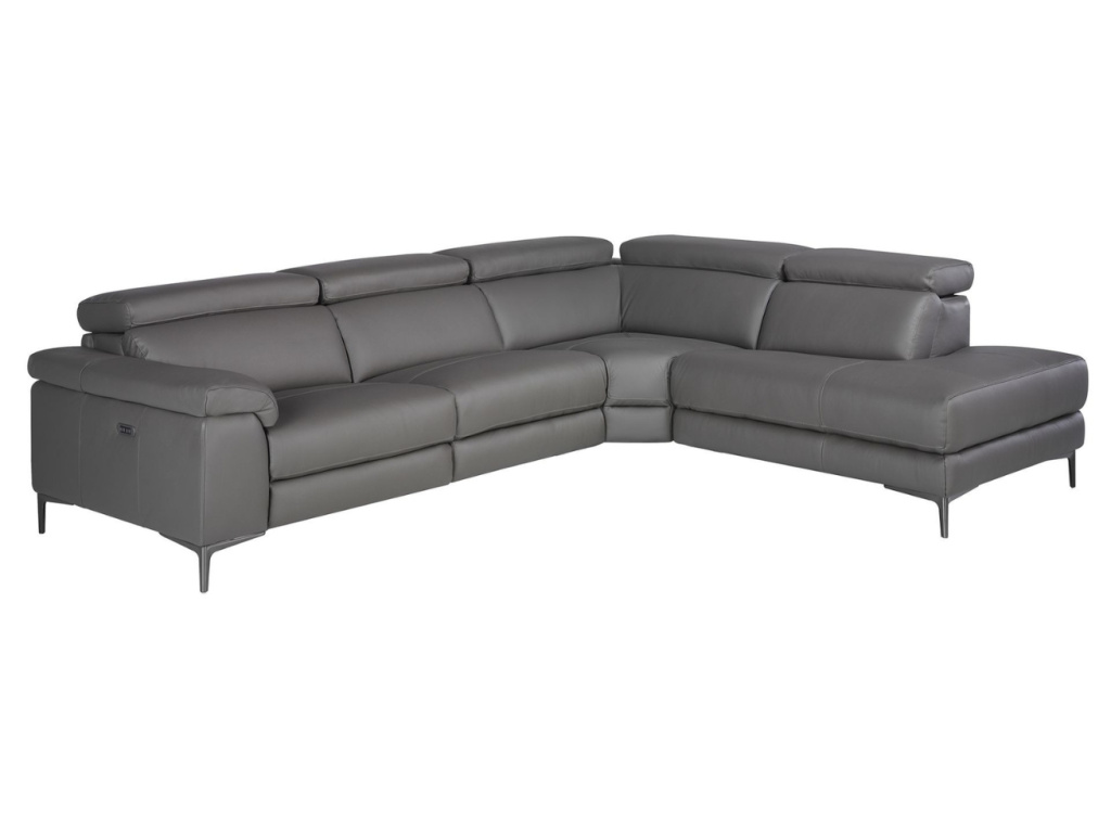 Tato rohová pohovka v sobě spojuje moderní eleganci a prvotřídní komfort. Čalounění z hovězí kůže v tmavě šedém tónu krásně zapadne do interiérů inspirovaných minimalistickým nebo glamour stylem. Rohová lenoška nabízí dostatek prostoru pro relaxaci i společné chvíle s rodinou. Elektrický relaxační systém umožní snadné nastavení ideální polohy pro maximální pohodlí. Kovová podnož v tmavém provedení dodává pohovce vizuální lehkost a perfektní stabilitu.
