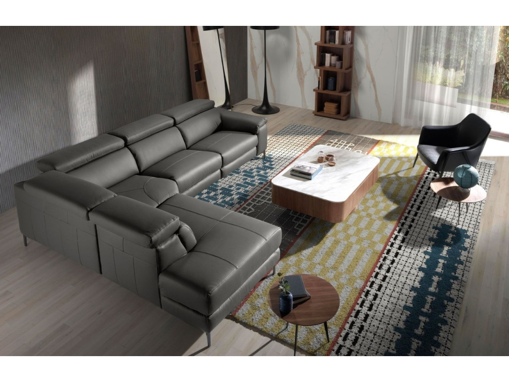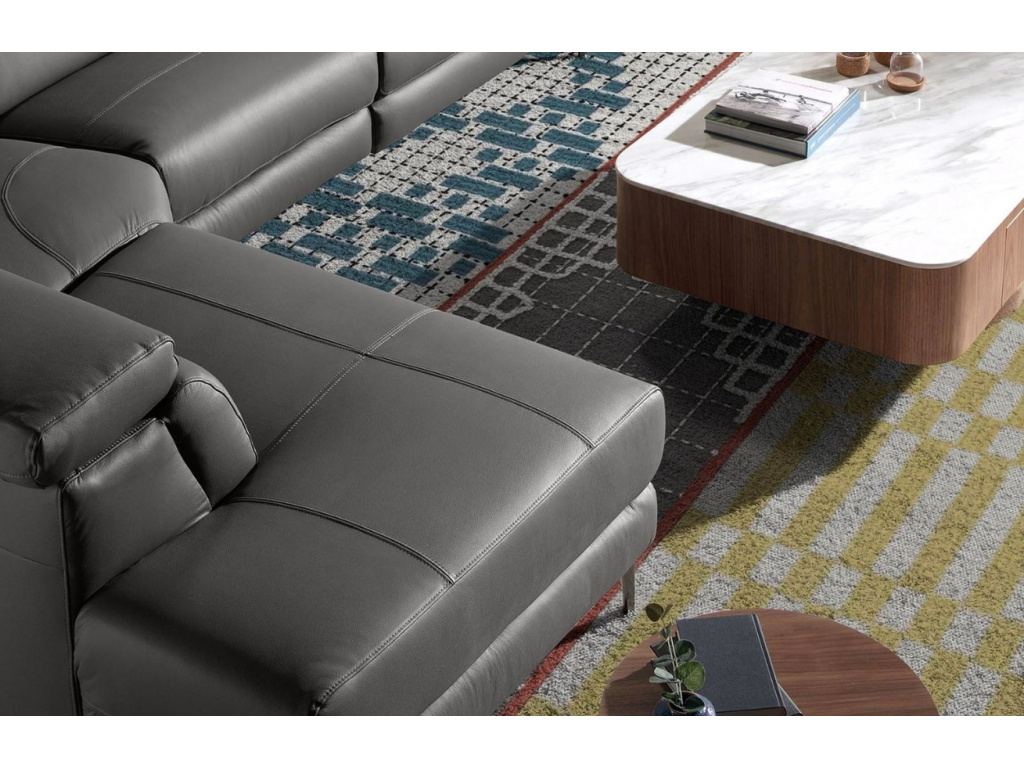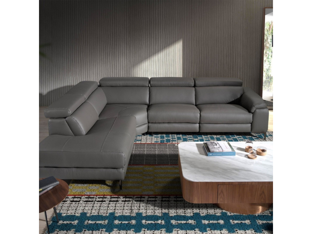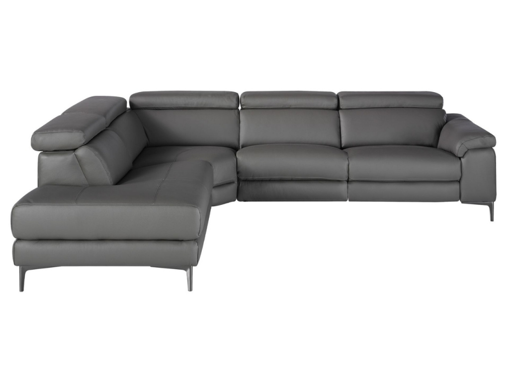 Tato rohová pohovka v sobě spojuje moderní eleganci a prvotřídní komfort. Čalounění z hovězí kůže v tmavě šedém tónu krásně zapadne do interiérů inspirovaných minimalistickým nebo glamour stylem. Rohová lenoška nabízí dostatek prostoru pro relaxaci i společné chvíle s rodinou. Elektrický relaxační systém umožní snadné nastavení ideální polohy pro maximální pohodlí. Kovová podnož v tmavém provedení dodává pohovce vizuální lehkost a perfektní stabilitu.