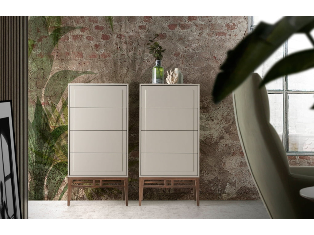 Komoda od značky Angel Cerdá si vás získá svým čistým designem s lakovaným povrchem v příjemné světle šedé barvě, která se skvěle doplňuje s ořechovou podnoží. Její čtyři prostorné zásuvky potěší každého, komu doma zoufale schází úložný prostor. Doplňte komodu o ostatními produkty Angel Cerdá ze stejné řady a dolaďte tak váš interiér k dokonalosti.
