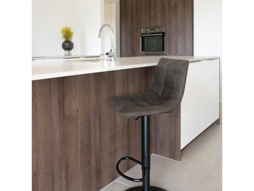 Stylová barová židle Nellie zaplaví interiér svým osobitým a stylovým provedením. Sedák je čalouněný šedou látkou z mikrovlákna a nabídne jen to nejlepší pohodlí. Celek dotváří elegantní prošívání a kovová podnož, která dodá produktu výraz a postará se o jeho originalitu. Příjemným bonusem je možnost židli výškově nastavit. Židle se skvěle hodí do moderních interiérů.
