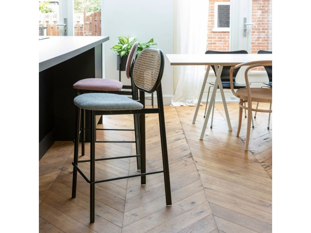 Více infoŠedá látková barová židle ZUIVER SPIKE 65 cm s ratanovým opěradlem