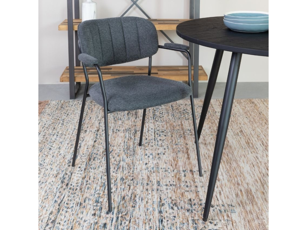 Jídelní židle Jolien upoutá svým minimalistickým stylem. Sedák a záda čalouněné látky v šedé barvě společně s kovovou lakovanou podnoží v černé barvě dodá vašemu tělu ideální komfort a pohodlí nejen v kancelářích. Područky navíc zajišťují maximální pohodlí.