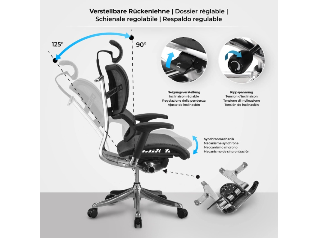 Špičkový design a ergonomické funkce z kancelářské židle Folk od značky CLP tvoří nezbytnou součást kancelářských prostorů! Srdcem židle je multifunkční, čtyřstupňová výškově nastavitelná zádová opěrka, kterou lze přizpůsobit přesně vašim potřebám a ulevit meziobratlovým ploténkám. Opěradlo lze sklopit až o 125°. Během relaxačních chvílí máte k dispozici výškově i úhlově nastavitelnou opěrku hlavy a 4D područky poskytující úlevu pro oblast ramen a krku. Síťovaný potah je šik a zároveň funkční a kromě prodyšnosti tkanina zaujme i vysokou odolností. Kancelářské křeslo Folk skvěle zapadne do komerčních kanceláří i domácích pracoven.