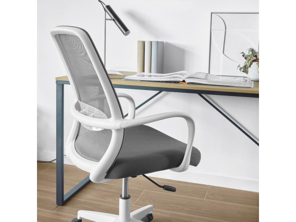 Výškově nastavitelná a otočná židle Kave Home Melva obohatí jakoukoliv pracovnu či kancelář. Židle je potažená šedou jemnou látkou, jež dodává na prodyšnosti. Melva také poskytuje možnost naklápění zadního opěradla a dvojice područek z polypropylenu zaručuje pohodlné sezení. O perfektní stabilitu této židle se postará nastavitelná základna a podnož tvořena pěti rameny na kolečkách. Židle se skvěle hodí do kancelářských prostor či do domácích pracoven.