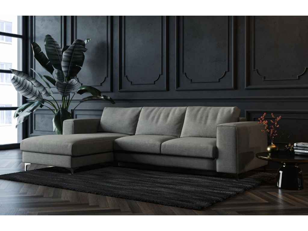 Stylová a luxusní designová rohová pohovka DEVICHY Rothe se díky svému jedinečnému a minimalistickému tvaru stane nepřehlédnutelnou součástí vaší domácnosti. Stabilní kovová podnož je dokonale doplněna o čalounění z kvalitní a příjemné látky v šedém provedení, která je charakteristická pro svou nadprůměrnou odolnost a speciální vodě odpudivou úpravu. Pohovku DEVICHY Rothe navíc snadno můžete proměnit na pohodlné a dostatečně velké lůžko, díky jednoduchému rozkladu. Reprezentativní a exkluzivní vzhled dokonale kombinuje pohodlí a styl.