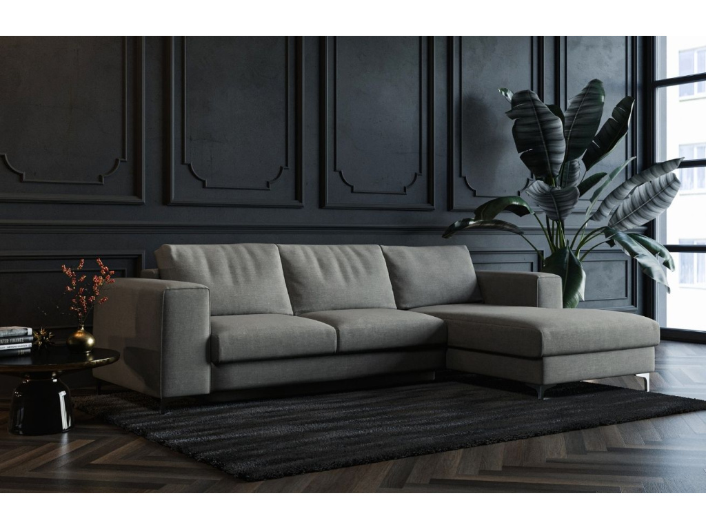 Stylová a luxusní designová rohová pohovka DEVICHY Rothe se díky svému jedinečnému a minimalistickému tvaru stane nepřehlédnutelnou součástí vaší domácnosti. Stabilní kovová podnož je dokonale doplněna o čalounění z kvalitní a příjemné látky v šedém provedení, která je charakteristická pro svou nadprůměrnou odolnost a speciální vodě odpudivou úpravu. Pohovku DEVICHY Rothe navíc snadno můžete proměnit na pohodlné a dostatečně velké lůžko, díky jednoduchému rozkladu. Reprezentativní a exkluzivní vzhled dokonale kombinuje pohodlí a styl.