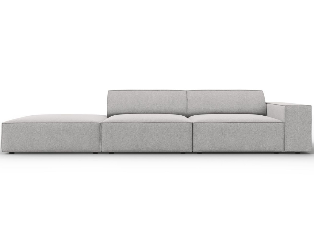 Prostorná modulární trojmístná pohovka Jodie od značky Micadoni zaujme svou krásnou siluetou. Elegantní strukturovaná tkanina, která se značí viditelnou vazbou vláken bez lesku. Látka prošla testem na cigarety, díky tomu je pohovka vhodná i do komerčních prostor. Její polstrovaný tvar vám zaručí plnohodnotný odpočinek, zatímco hluboký sedák umožní dokonalou relaxaci. Opřít se můžete také o tvarované opěráky a široké područky, které vybízejí k nespoutanému lenošení. Nízká podnož ladí s útulnou siluetou nábytku. Velký výběr modulů vám umožní vytvořit si kombinace, které budou nejlépe vyhovovat vašemu obývacímu pokoji v minimalistickém či skandinávském stylu.