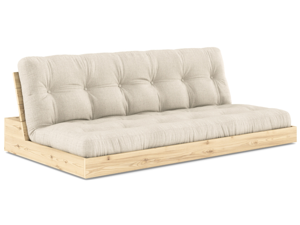Dvoumístná rozkládací pohovka Base od dánské značky Karup Design je dle slov designérů ztělesněním moderního a multifunkčního bydlení. Jednoduchým pohybem se pohovka promění na praktické a pohodlné lůžko. Konstrukce z masivního borovicového dřeva s FSC certifikací je doplněna o kvalitní 14 cm vysokou futonovou matrací, která v sobě kombinuje recyklovaná vlákna a 4cm pěnu. Praktickým detailem této pohovky je úložný prostor v zadní opěrce, kam snadno uložíte například lůžkoviny. Pohovka Base se skvěle hodí do skandinávsky či minimalisticky laděných domovů, kde se přizpůsobí všem vašim požadavkům. Představuje skvělé řešení především pro menší interiéry, kde oceníte další místo na spaní. Vybrat si ji můžete v mnoha barvách matrací, ve variantě s úložnými boxy nebo s černě lakovaným čelem.