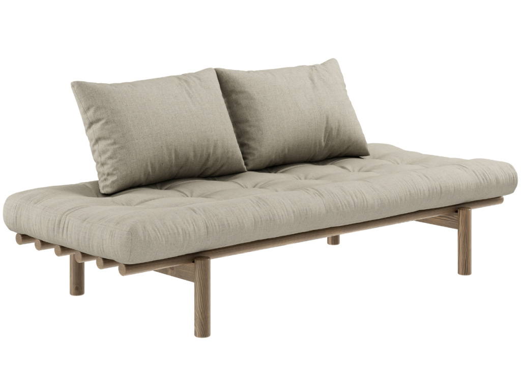 Usaďte se a odpočiňte si na třímístné pohovce Pace od dánské značky Karup Design. Konstrukce z masivního borovicového dřeva s FSC certifikací je doplněna o kvalitní 12cm futonovou matraci, která v sobě kombinuje recyklovaná vlákna a 4cm pěnu. Její jednoduchý skandinávský vzhled v kombinaci s japonskou futunovovu matrací zkrátka nikdy nevyjde z módy! Představuje skvělé řešení především pro menší interiéry, kde oceníte další místo na spaní. Balení navíc obsahuje 2 velké polštáře. Pace je dostupná v široké škále barev matrací a další barvě konstrukce – jaká bude zdobit váš domov?