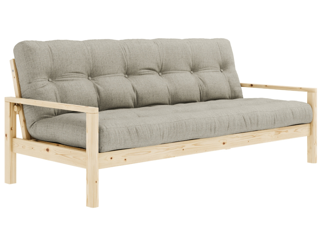 Pohovka nebo postel? Trojmístná rozkládací pohovka Knob od dánské značky Karup Design umí být obojím! Pod dřevěnými područkami se nachází dva nenápadné úchyty, které lze snadno odšroubovat a vy tak během chvilky získáte pohodlné lůžko pro vás nebo vaše hosty. Konstrukce z masivního borovicového dřeva s FSC certifikací je doplněna kvalitní 14cm futonovou matraci, která v sobě kombinuje recyklovaná vlákna a 4 cm pěny. Pohovka Knob fantasticky zapadne do skandinávských a japonských stylů interiérů, do kterých vnese jednoduchost, eleganci a ryzí funkčnost. Představuje skvělé řešení zejména pro menší prostory, do kterých přinese další místo na spaní. Vybrat si ji můžete v další barvě konstrukce či v mnoha barvách matrací.