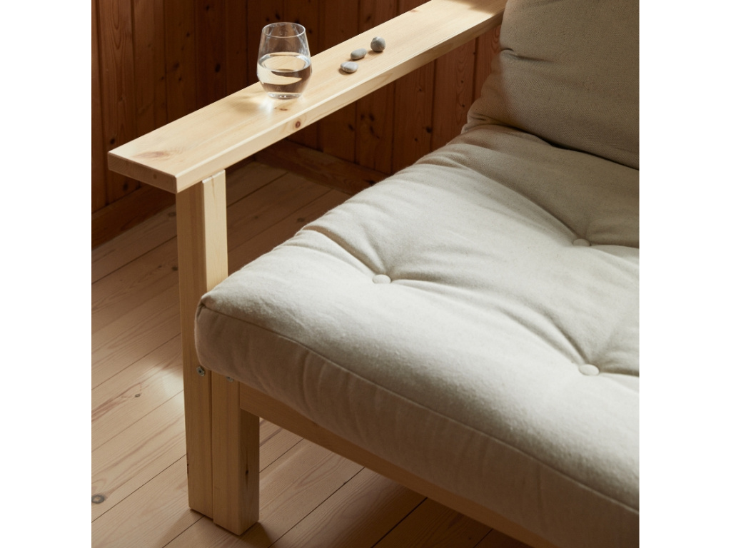 Třímístná rozkládací pohovka Unwind značky Karup Design se stane vaším oblíbeným společníkem pro filmové večery. Jedním jednoduchým pohybem se z elegantní pohovky stane prostorné lůžko. Konstrukce z masivního borovicového dřeva s FSC certifikací je doplněna kvalitní 14 cm vysokou futonovou matrací, která v sobě kombinuje recyklovaná vlákna a 4 cm pěnu. Praktickým detailem této pohovky jsou pohodlné širší loketní opěrky. Unwind se skvěle hodí do interiérů laděných ve stylu scandi. Představuje skvělé řešení zejména pro menší interiéry, do kterých přinese další místo na spaní. Vybrat si můžete z široké škály barev.
