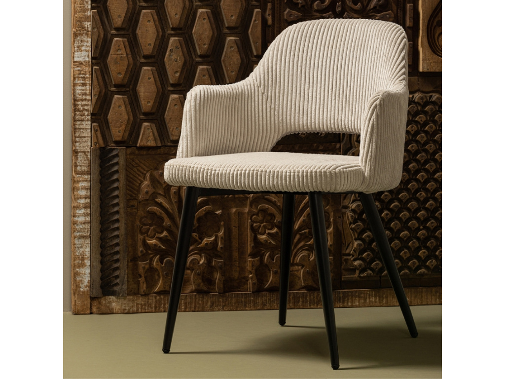 Manšestrová jídelní židle Ferdie vás okamžitě zaujme díky nadčasovému vzhledu, atypické žebrované látce a černému kovovému podnoží. Jemné křivky a kvalitní látka s martindale 20 000 dodává Ferdie načechraný a měkký vzhled. Ferdie se může okamžitě stát součástí vašeho interiéru.