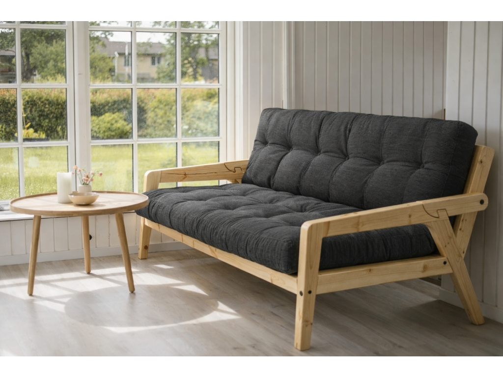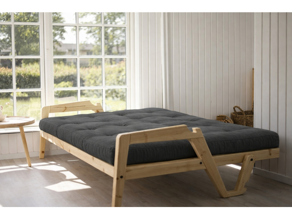 Třímístná rozkládací pohovka Grab značky Karup Design je dle slov designérů ideálním kouskem pro trávení společného času. Jednoduchým pohybem se elegantní pohovka promění na praktické lůžko. Konstrukce z masivního borovicového dřeva s FSC certifikací je doplněna kvalitní 14 cm vysokou futonovou matrací, která v sobě kombinuje recyklovaná vlákna a 4 cm pěnu. Praktickým detailem této pohovky jsou designové opěrky, které snadno odepnete a vytvoříte tak postel pro dva. Grab se skvěle hodí do skandinávsky laděných domovů. Představuje skvělé řešení především pro menší interiéry, kde oceníte další místo na spaní. Vybrat si ji můžete v další barvě konstrukce či v mnoha barvách matrací.