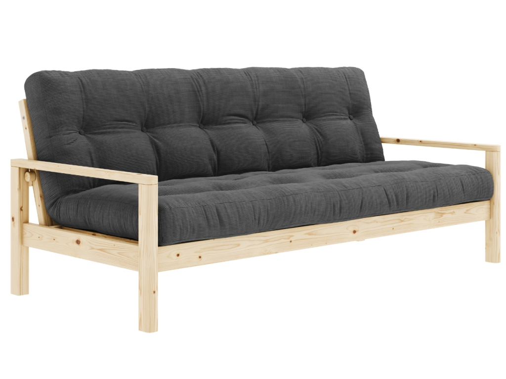 Pohovka nebo postel? Trojmístná rozkládací pohovka Knob od dánské značky Karup Design umí být obojím! Pod dřevěnými područkami se nachází dva nenápadné úchyty, které lze snadno odšroubovat a vy tak během chvilky získáte pohodlné lůžko pro vás nebo vaše hosty. Konstrukce z masivního borovicového dřeva s FSC certifikací je doplněna kvalitní 14cm futonovou matraci, která v sobě kombinuje recyklovaná vlákna a 4 cm pěny. Pohovka Knob fantasticky zapadne do skandinávských a japonských stylů interiérů, do kterých vnese jednoduchost, eleganci a ryzí funkčnost. Představuje skvělé řešení zejména pro menší prostory, do kterých přinese další místo na spaní. Vybrat si ji můžete v další barvě konstrukce či v mnoha barvách matrací.