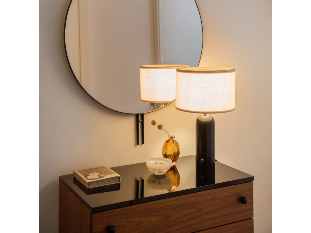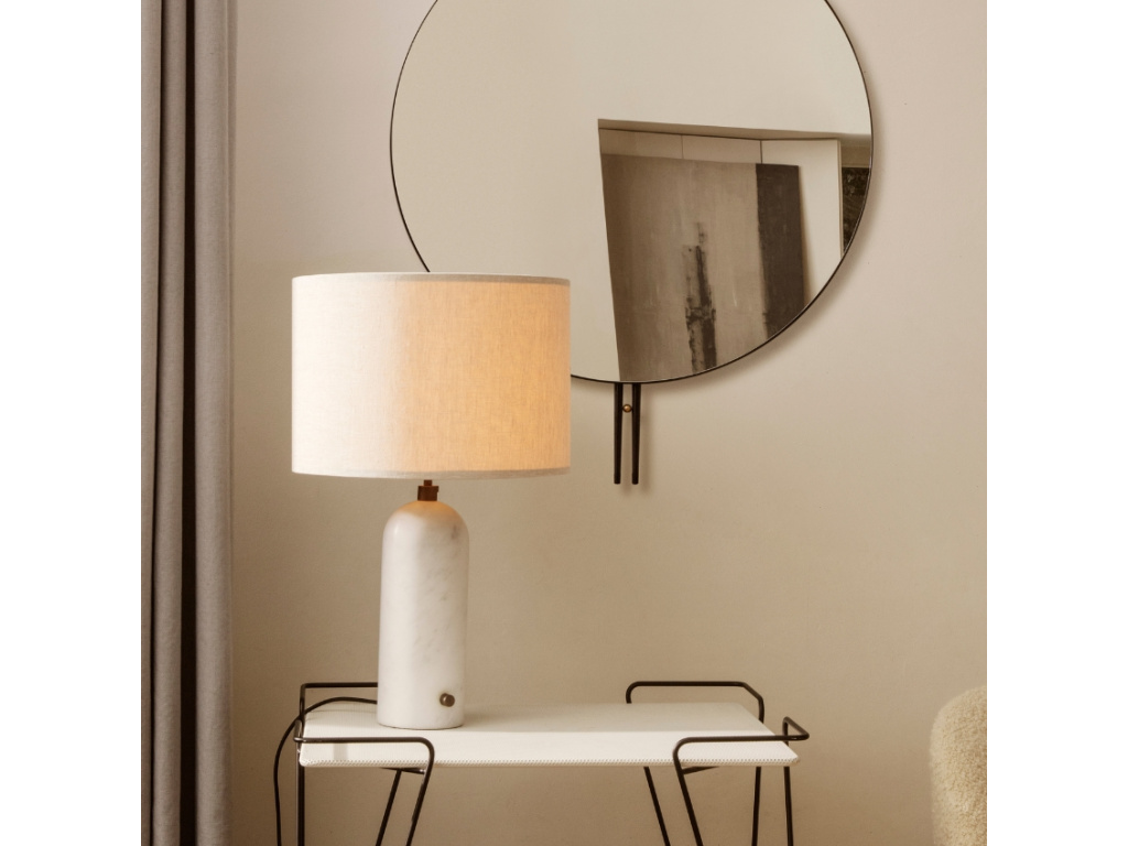 Gravity je elegantní stolní lampa, která v sobě spojuje kontrastní prvky síly a lehkosti. Tato lampa se vyznačuje robustní, válcovitou základnou ze šedého mramoru a lehkým, vzdušným stínidlem. Tento design vytváří harmonický celek, který působí jako sochařský prvek v interiéru. S výškou 49 cm poskytuje lampa příjemné, tlumené osvětlení, které vytváří útulnou atmosféru v místnosti. Díky svému univerzálnímu designu se hodí do různých prostorů, od obývacích pokojů po ložnice či kanceláře. Gravity je ideální volbou pro ty, kteří hledají spojení funkčnosti, estetiky a kvalitního zpracování v jednom designovém kousku.
