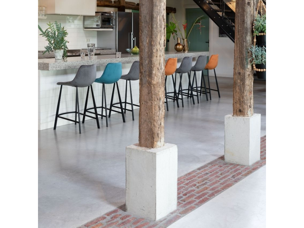 Šedá barová židle Franky je stylovým posezením, které vám poskytne úžasný komfort díky kvalitnímu zpracování. Úchvatnou kombinaci také utváří sedák čalouněný sametovou látkou s ocelovou, černě lakovanou podnoží. Vneste do svého domova moderní design a aktuální trendy s barovou židlí Franky.