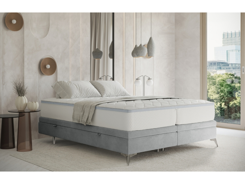 Dvoulůžková postel FIR přinese do vaší ložnice minimalistický design a funkčnost. Jemná sametová látka s lehkým leskem a povrchem Cleanaboo minimalizuje absorpci tekutin, což zjednodušuje její údržbu. Praktické úložné boxy s bočním otevíráním poskytují dostatek prostoru na uložení ložního prádla nebo sezónních věcí. Protiskluzová vrstva na základně zajišťuje, že matrace vždy zůstane na místě. Chromová podnož postele dodává celkovému vzhledu nádech moderní elegance. FIR je skvělá volba pro ty, kdo milující čisté linie a praktický styl, který pomůže zpříjemnit váš domov.