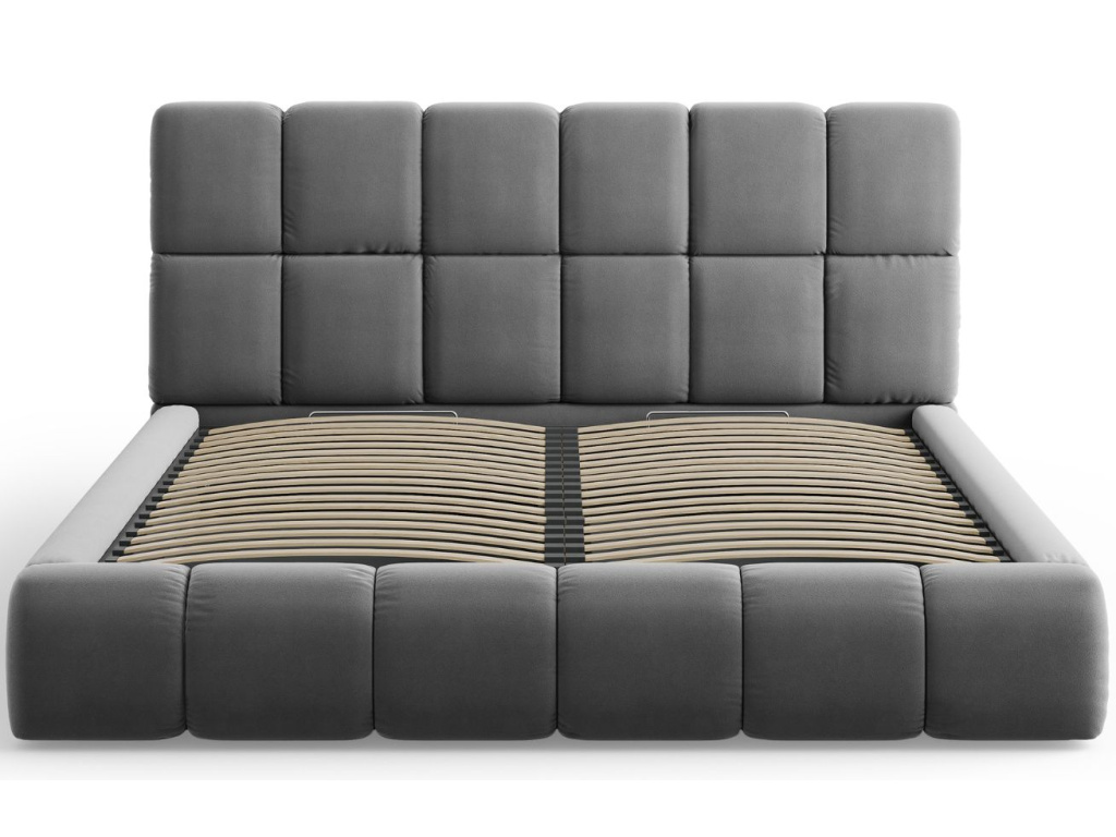 Dvoulůžková postel Bellis vás přenese na pobřeží uklidňující Skandinávie. Měkké čalouněné čelo s geometrickým prošíváním je krásným dekorativním prvkem, který poskytuje pohodlí. Při čtení nebo sledování filmu budete mít kvalitní podpěru pro váš krk nebo záda. Celá konstrukce je čalouněna látkou imitující samet s mírným leskem, která vykazuje vysokou odolnost proti oděru. Nezbytným prvkem lůžka je úložný prostor pod matrací, který vám pomůže efektivně využít prostor a udržet v ložnici pořádek. K lůžku doporučujeme zakoupit matraci od značky Micadoni.